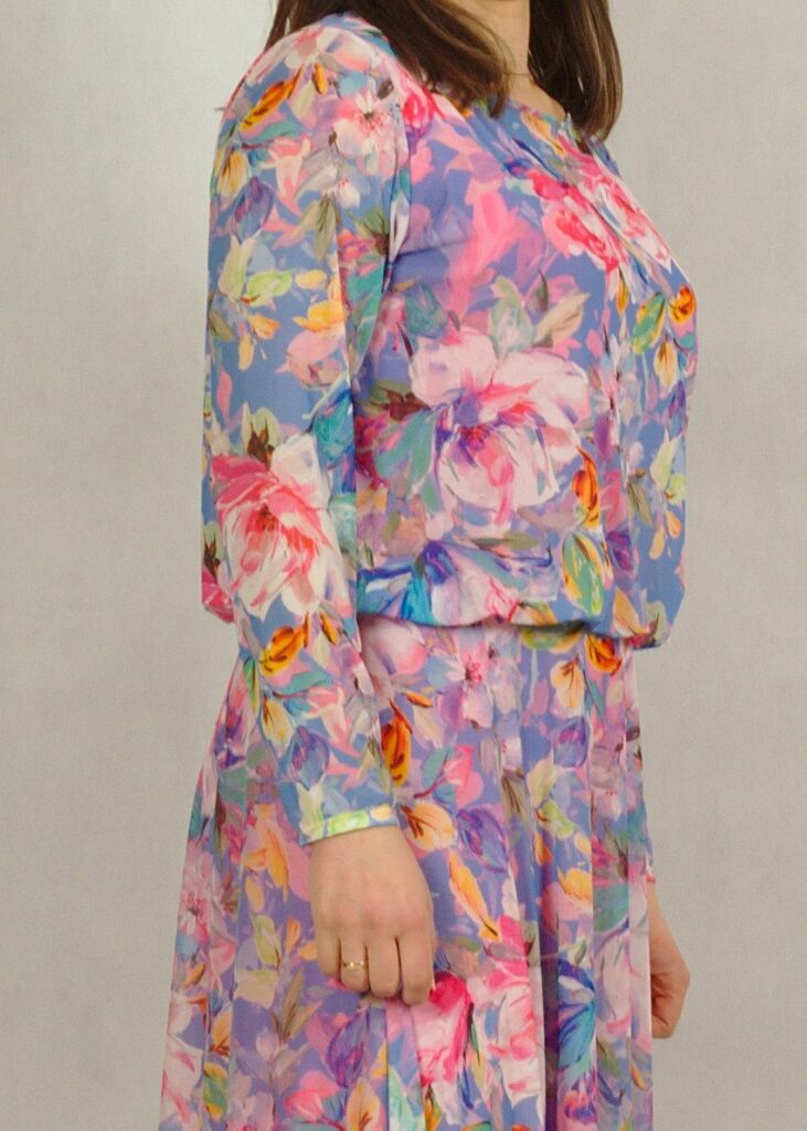 Sukienka się nie gniecie, doskonale się układa, idealnie maskuje mankamenty ciała.