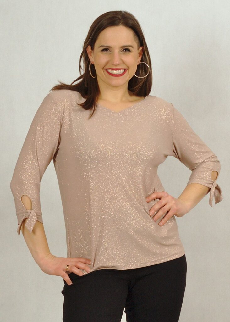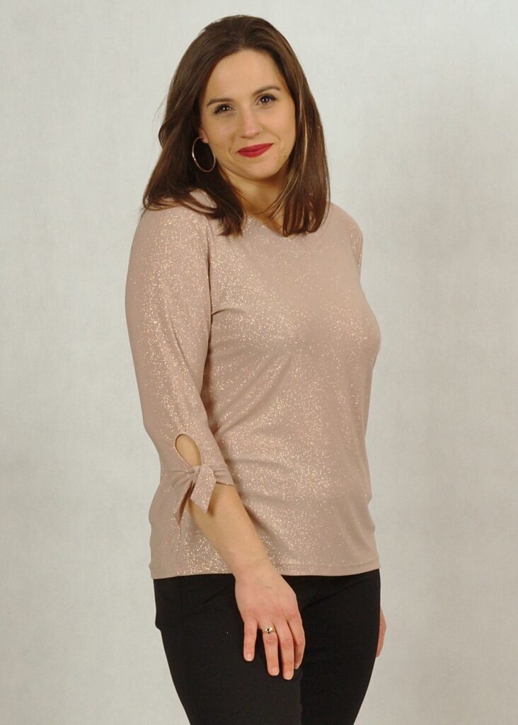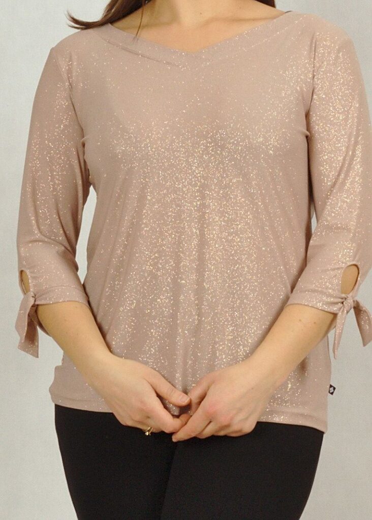 Niezwykle wyjątkowym jest połysk. To drobne brokatowe drobinki, które nadają bluzce wyjątkowości.