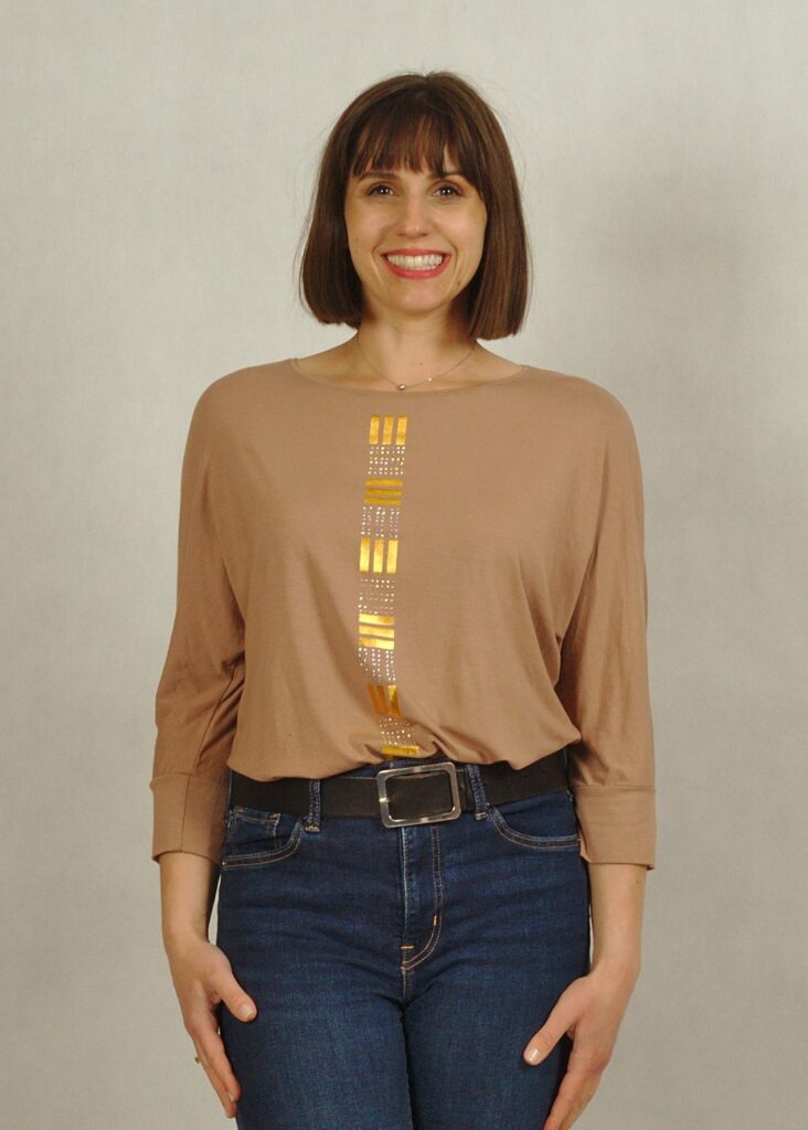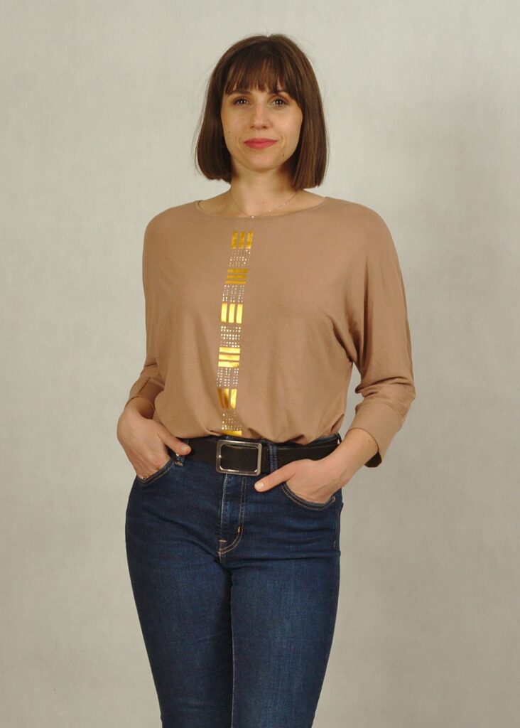 Bluzka uszyta jest w najwyższej jakości dzianiny wiskozowej, dzięki czemu poczujesz się w niej bardzo komfortowo.