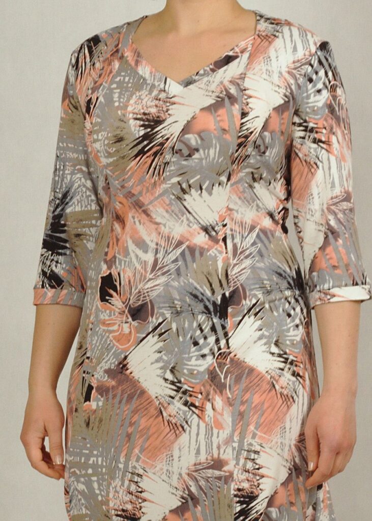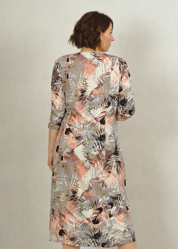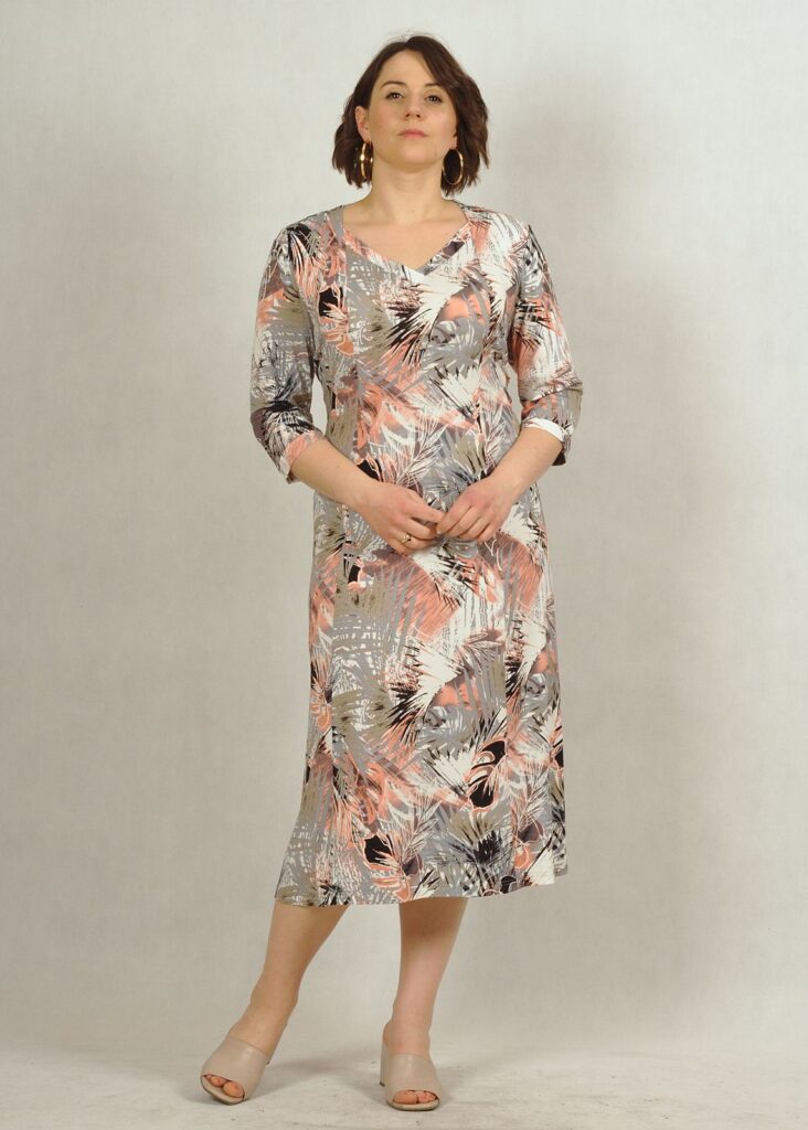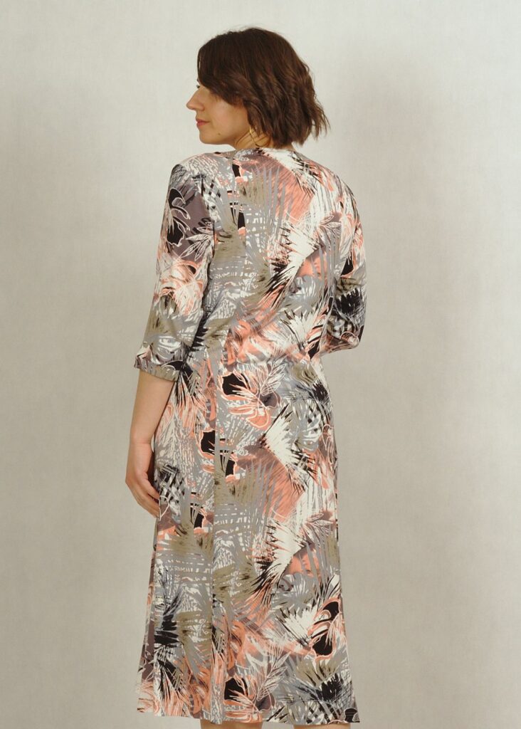 Sukienka urzeka swoimi kolorami – połączenie beżu, szarości i delikatnej czerni*.