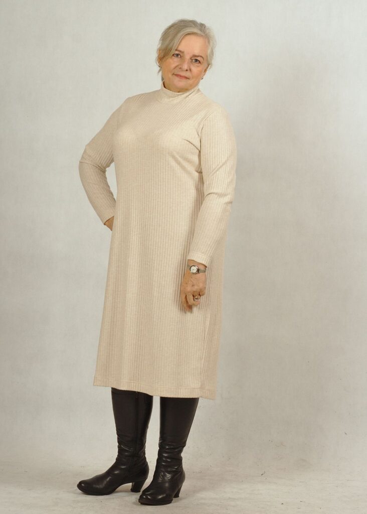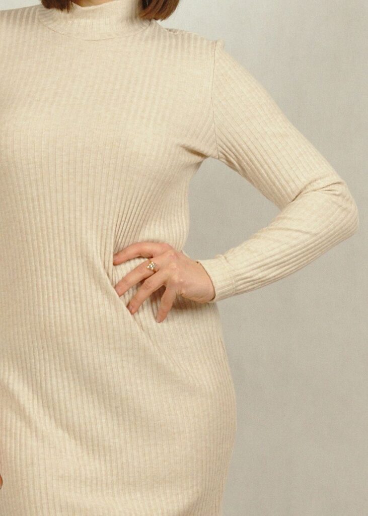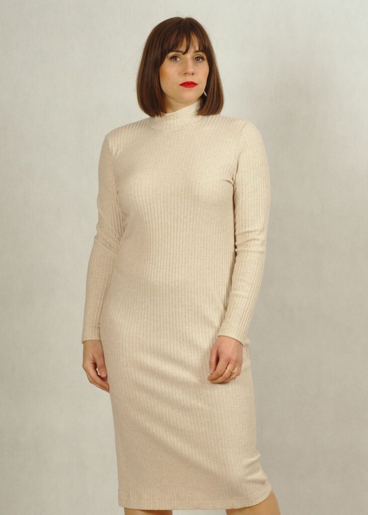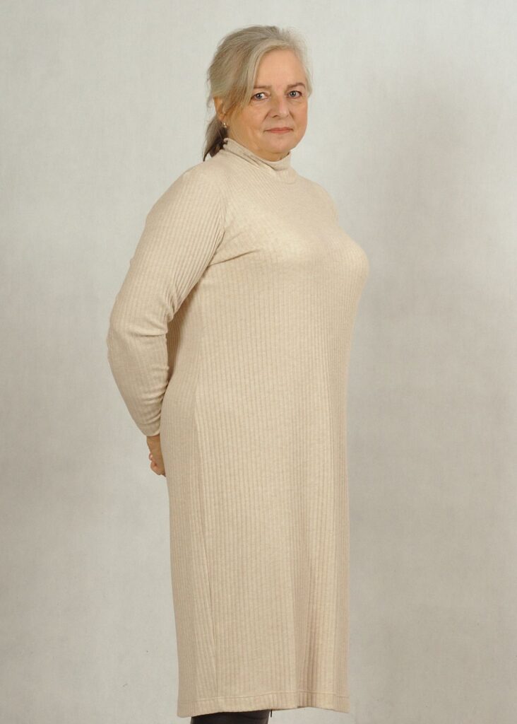 Bardzo elegancka sukienka ciepła wykonana z wysokiej jakości dzianiny prążkowanej – materiał w prążek.