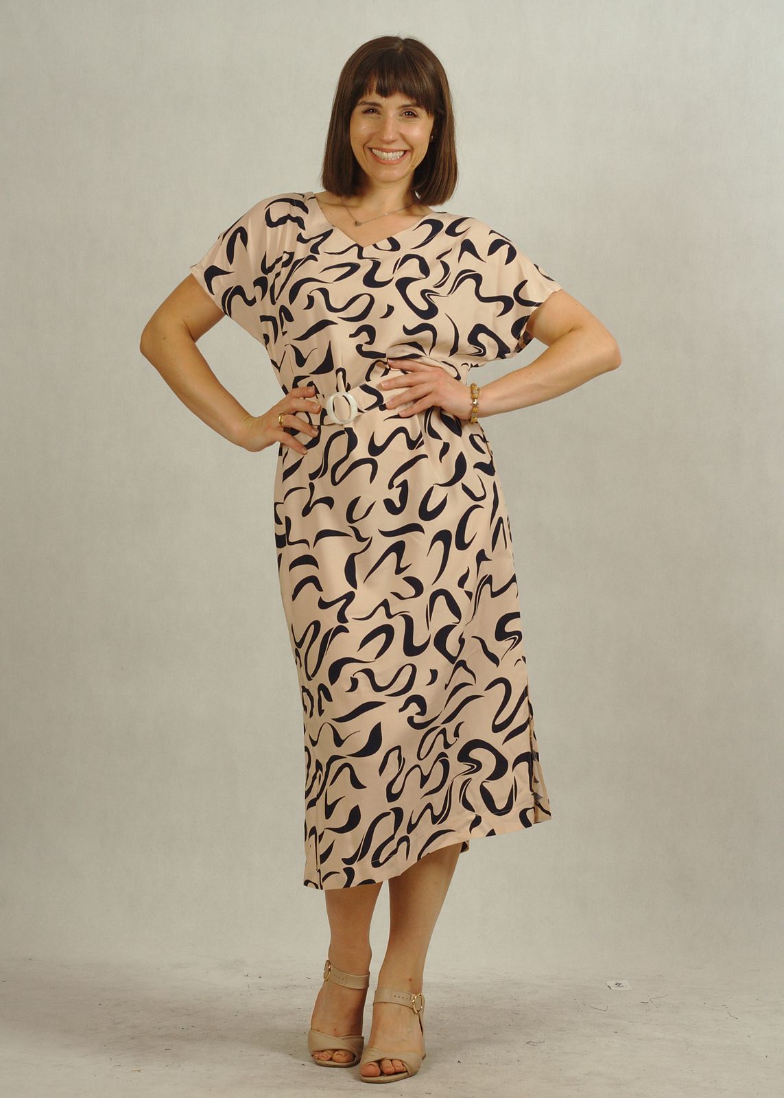 Polska marka plus size dba o to, żeby ta sukienka we wzory spełni oczekiwania nawet najbardziej wymagających klientek.