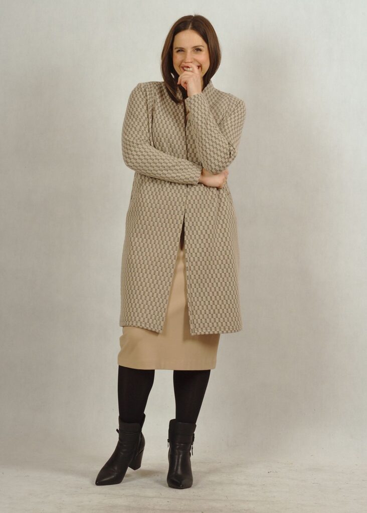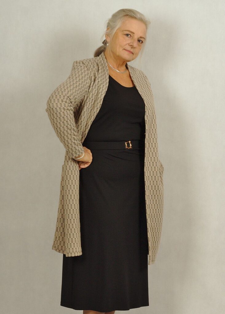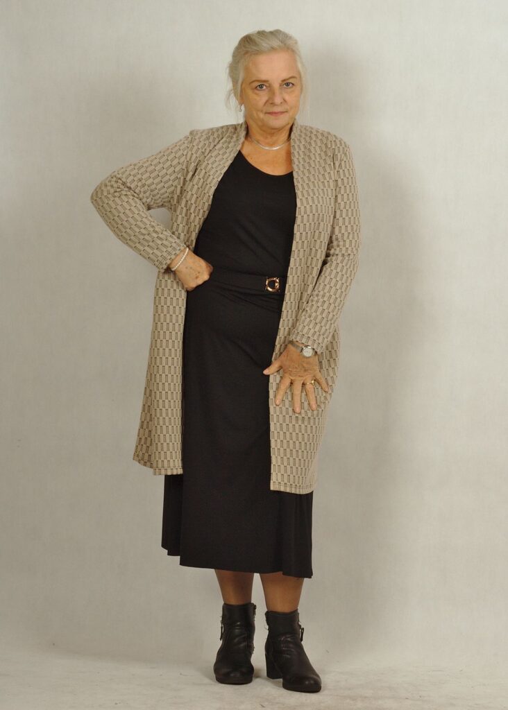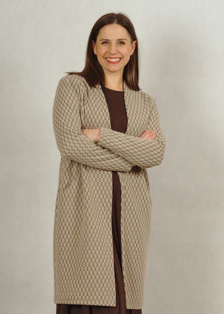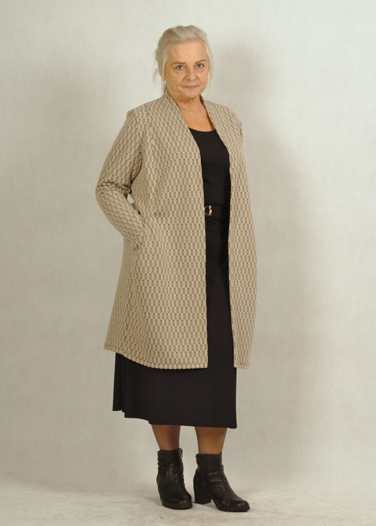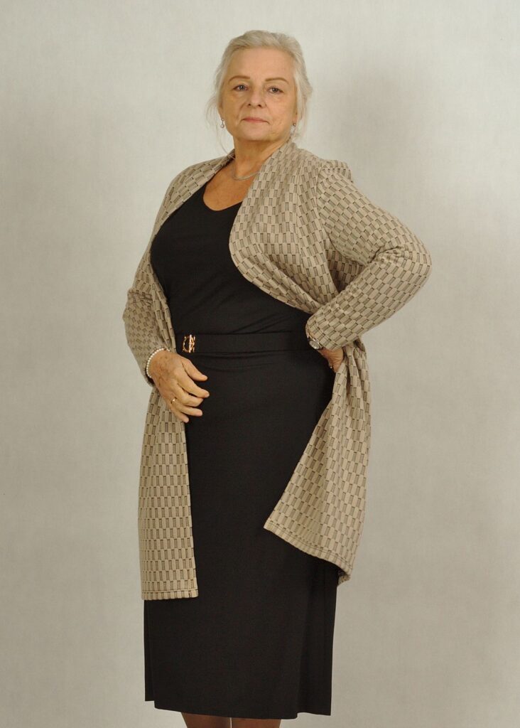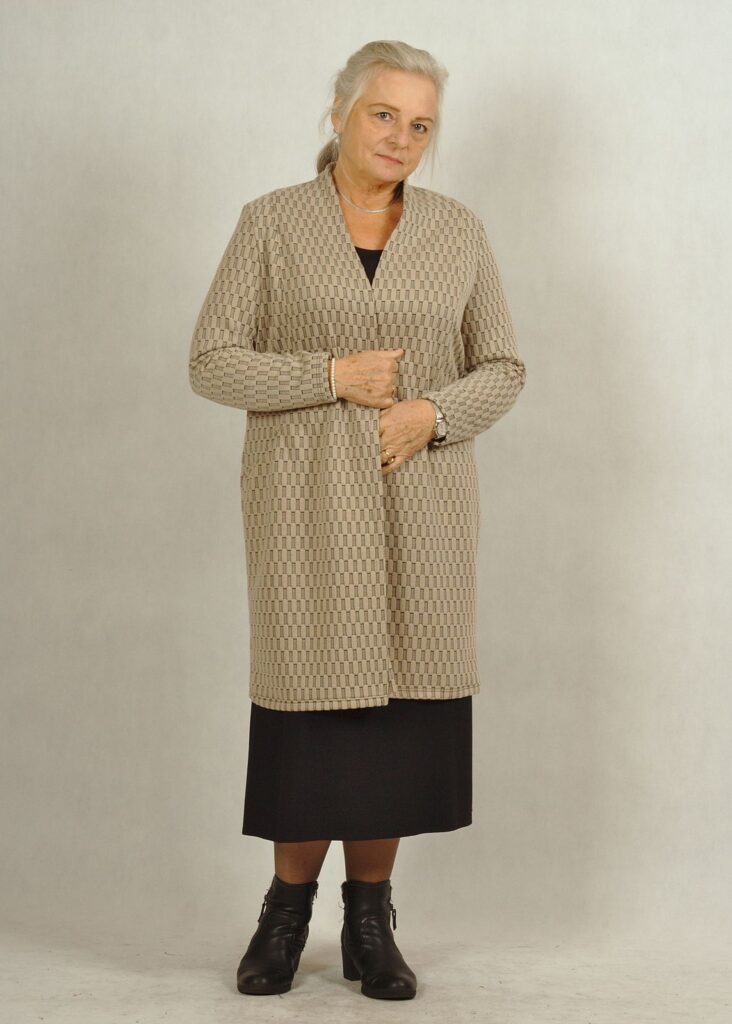 Kardigan pełni funkcję ozdobnego płaszcza.