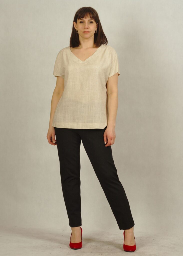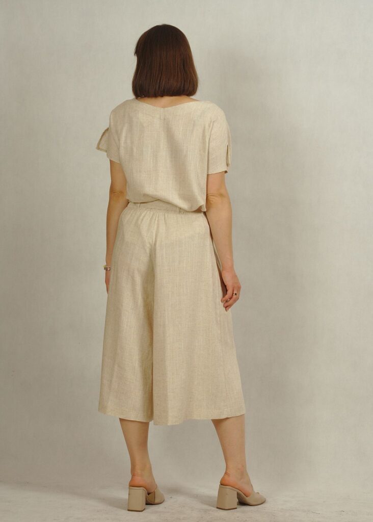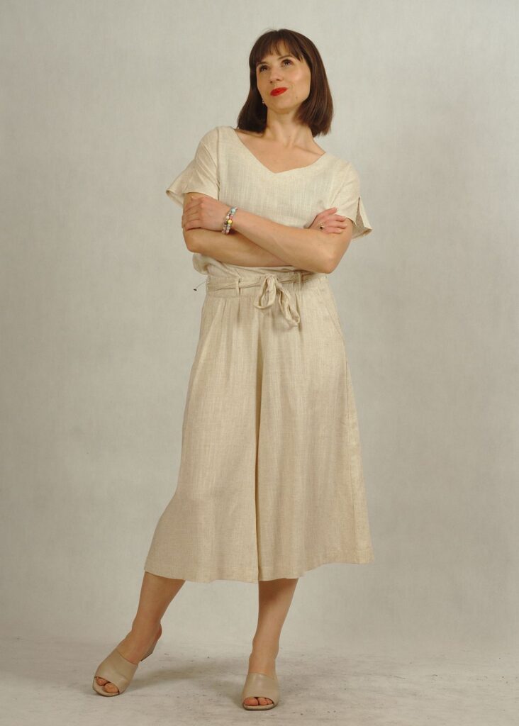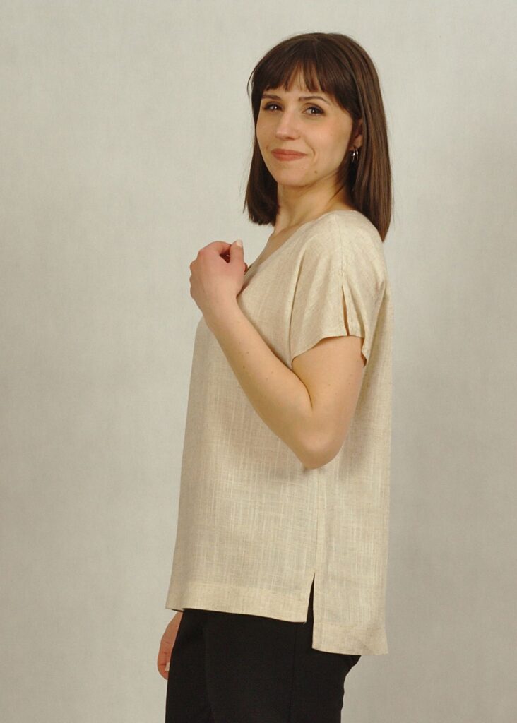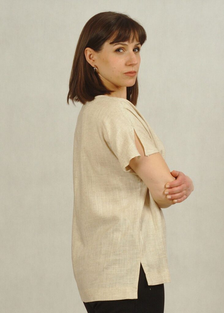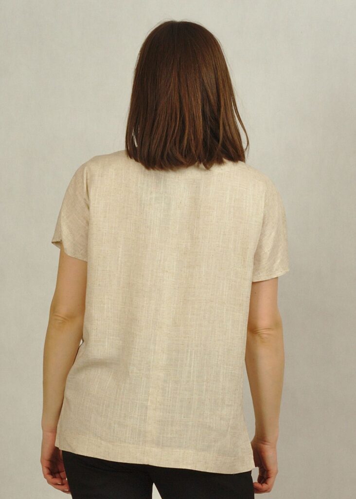 Beżowa bluzka wykonana z wysokiej jakości lnu to idealna propozycja na cieplejsze dni.