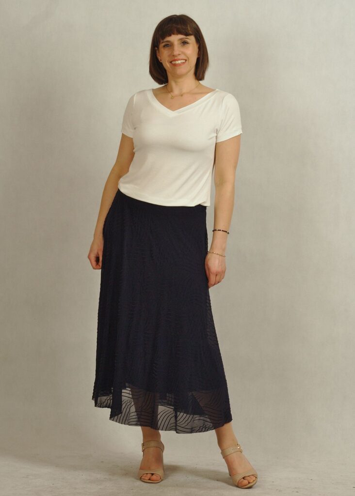 Bluzka wykonana z wysokiej jakości dzianiny wiskozowej z domieszką elastanu.
