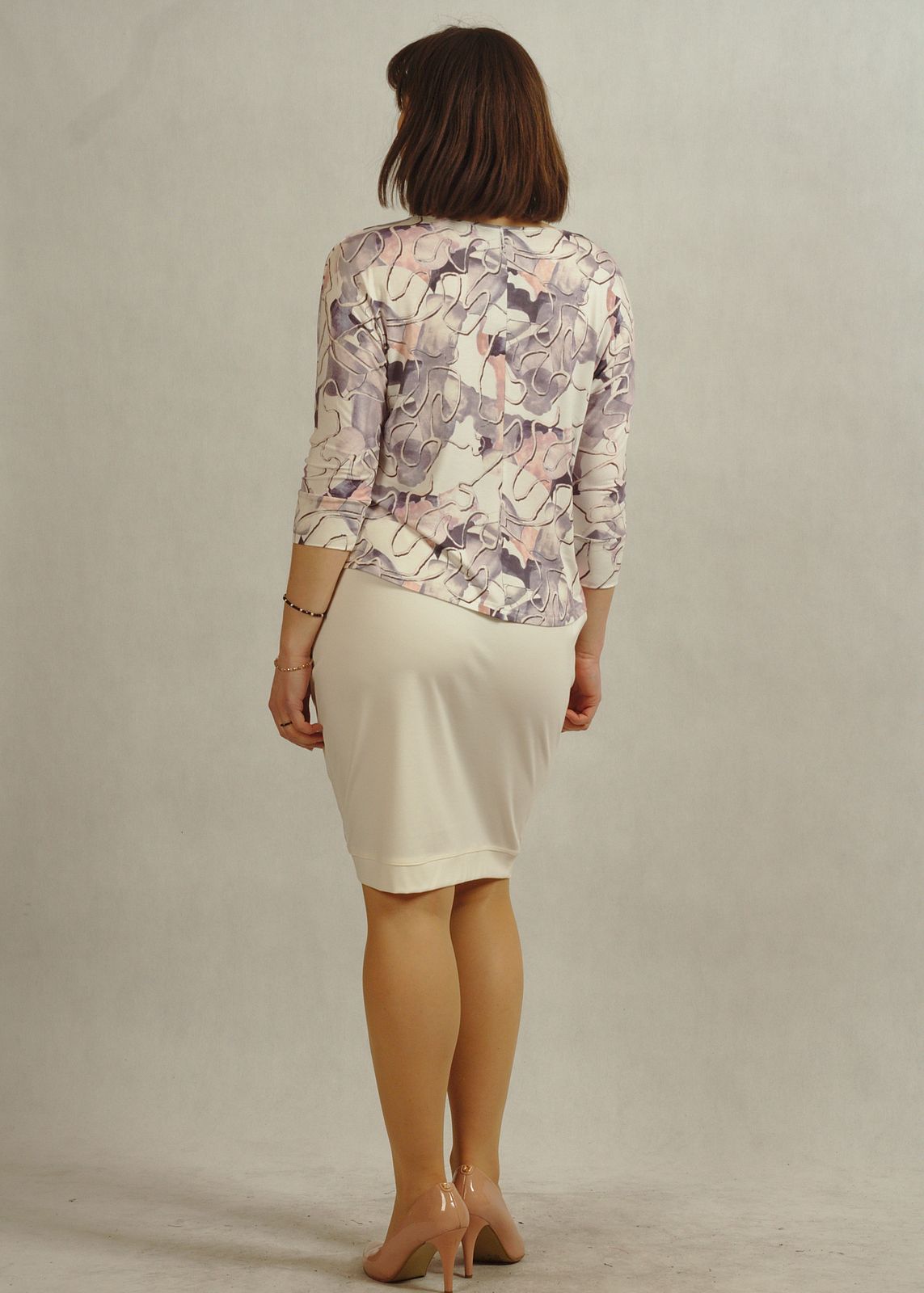 Biała bluzka w pastelowe wzory z rękawem kimono /716/