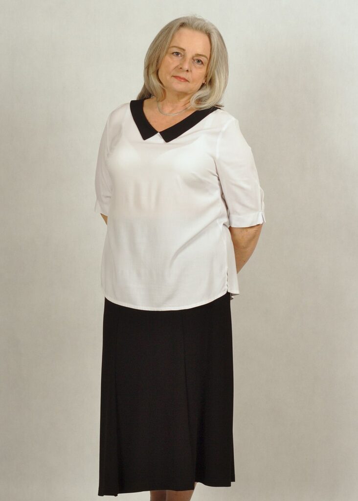 Bluzka dostępna w dużych i standardowych rozmiarach.