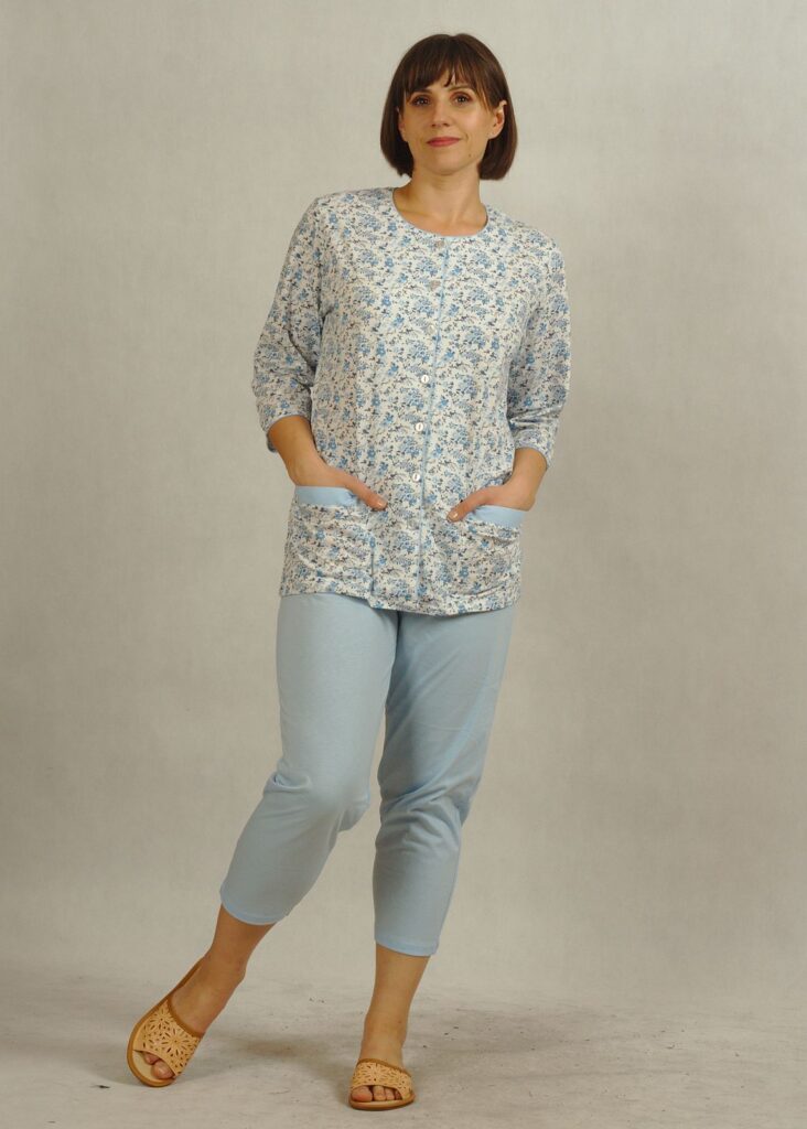 Piżama z rękawem 3/4, spodnie mają długość 7/8.