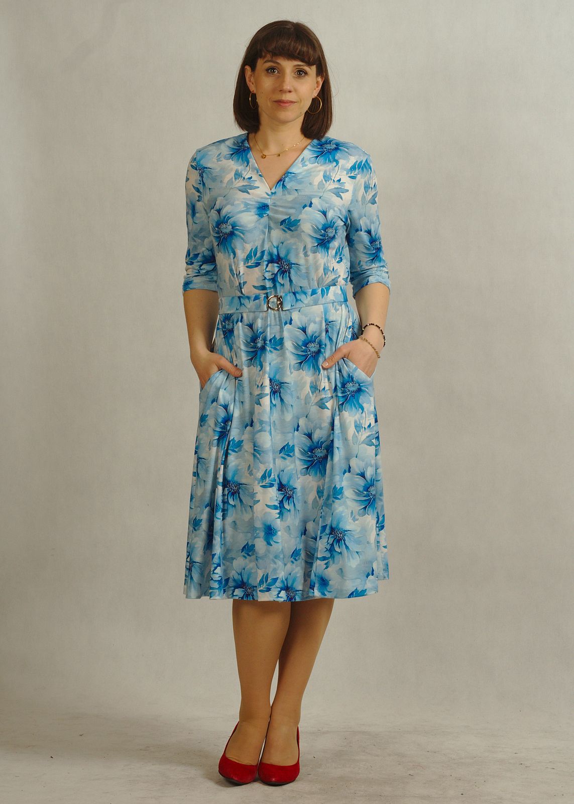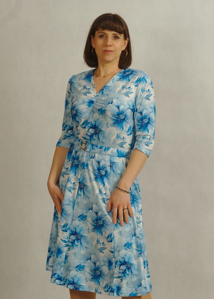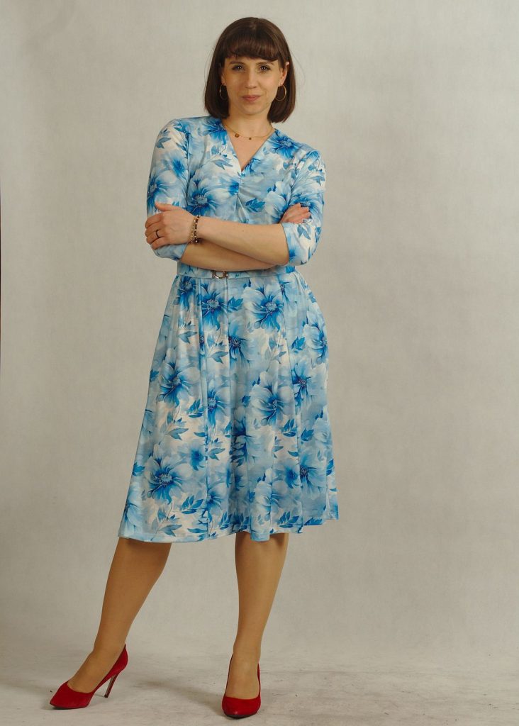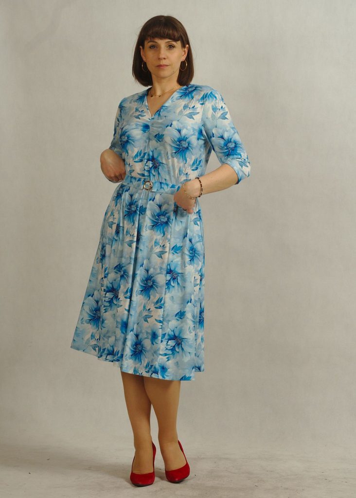 Błękitna sukienka w kwiaty to kobieca propozycja dla pań ceniących styl, wygodę i ponadczasową elegancję.