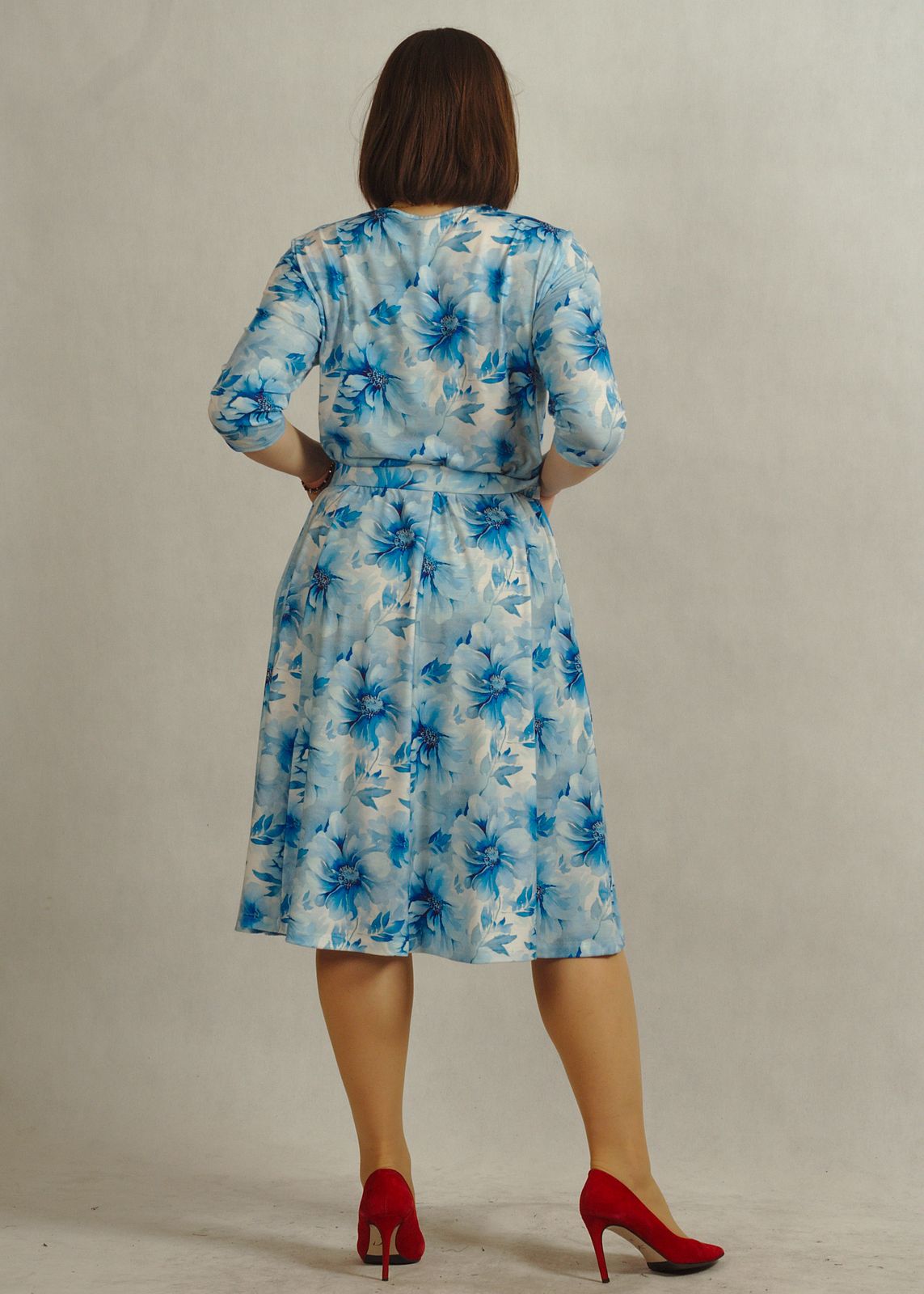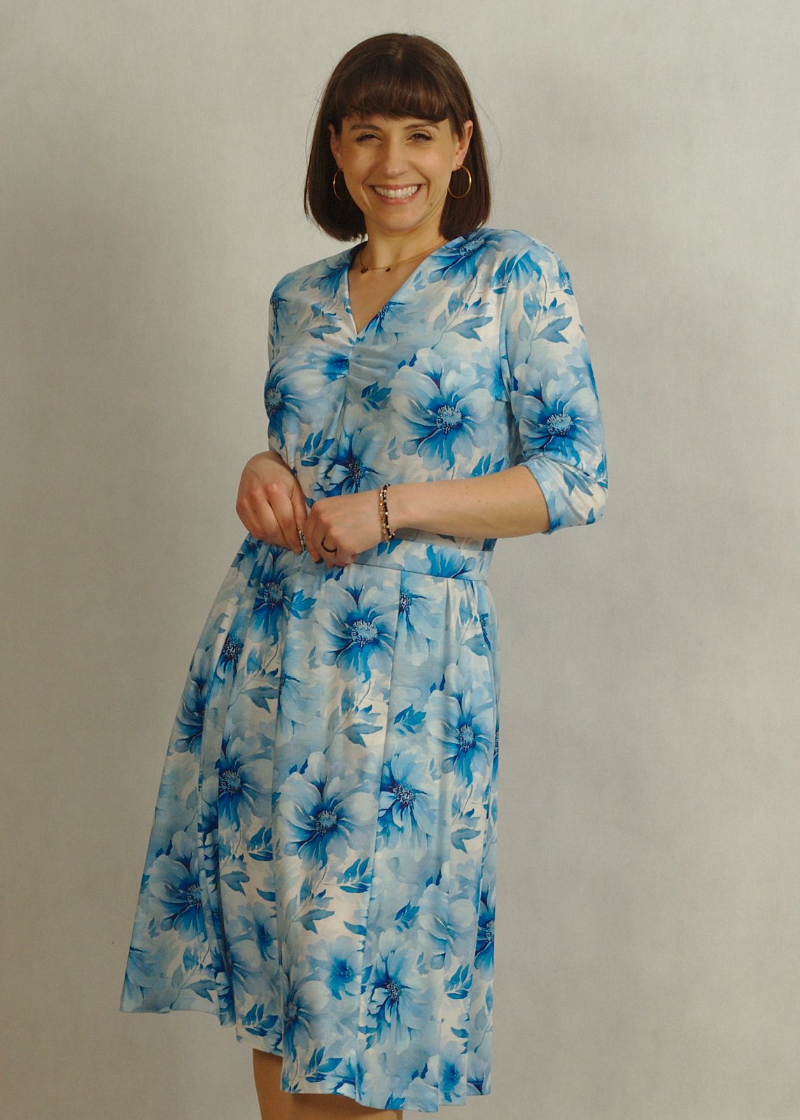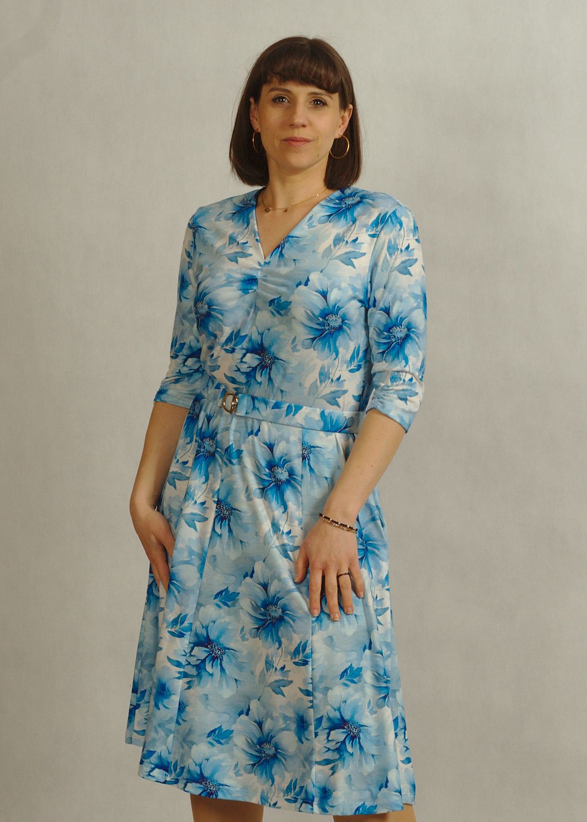 Uniwersalna sukienka z rękawem 3/4 sprawdzi się w wielu sezonach, a fason sukienka za kolano dodaje klasy i elegancji.