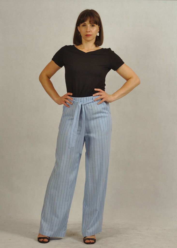 Błękitne spodnie z lnem i wiskozą – lekkość, styl i komfort