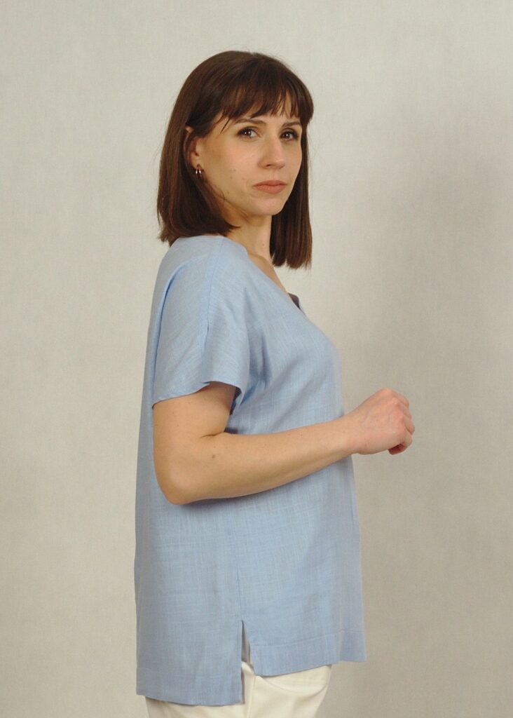 Odkryj wyjątkową jakość i styl, wybierając błękitną bluzkę lnianą stworzoną z myślą o kobietach plus size.