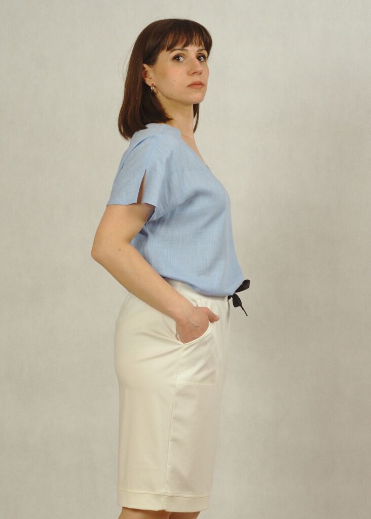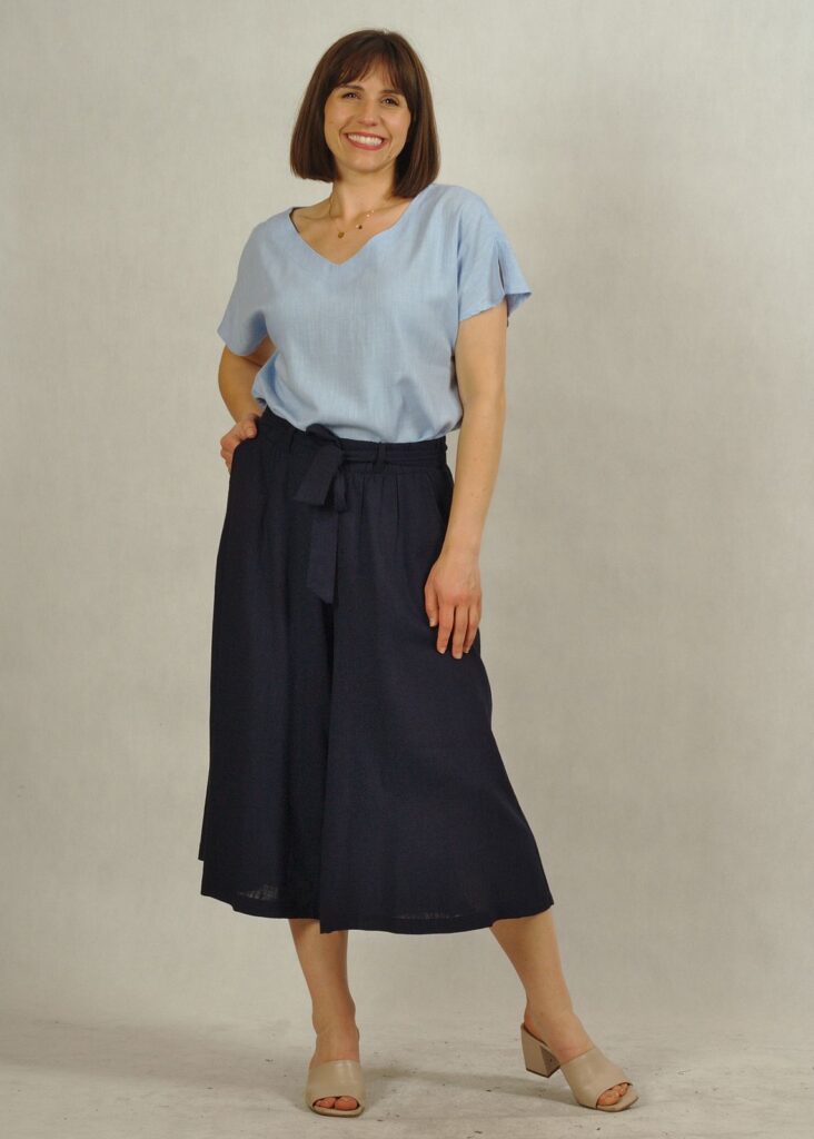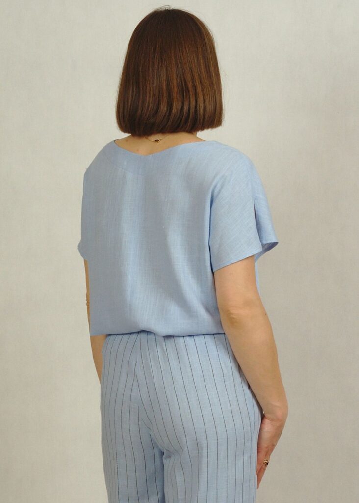 Ten lniany top sprawdzi się zarówno w codziennych, jak i eleganckich stylizacjach – zestaw go z jeansami, spódnicą lub lekkimi spodniami.