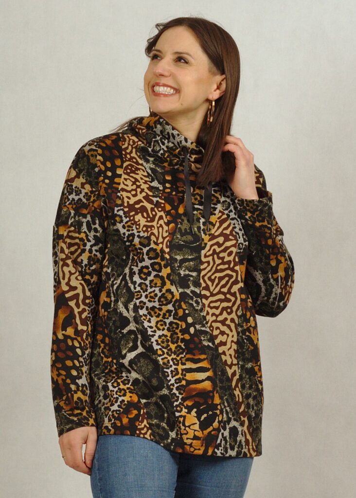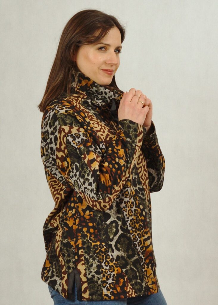 Bluza ma opadające ramiona, dzięki czemu można ją stylizować jako dopasowaną lub oversize – w zależności od tego, na jaki rozmiar się zdecydujesz.