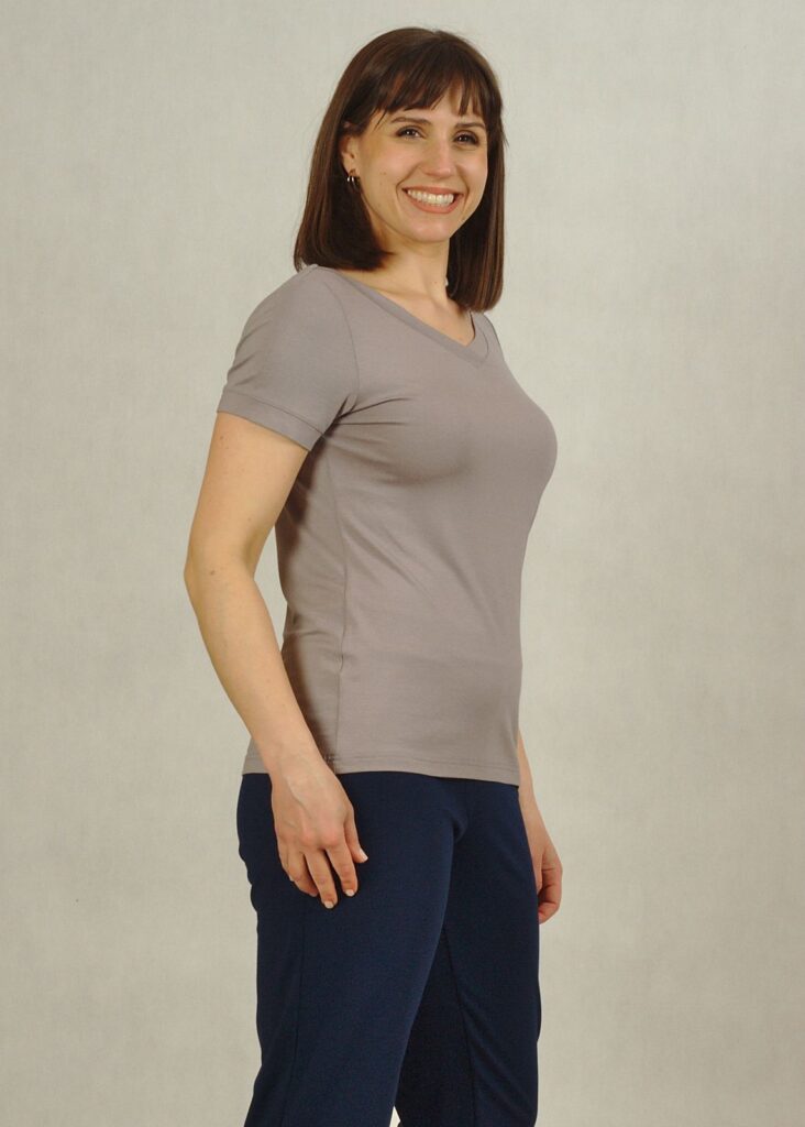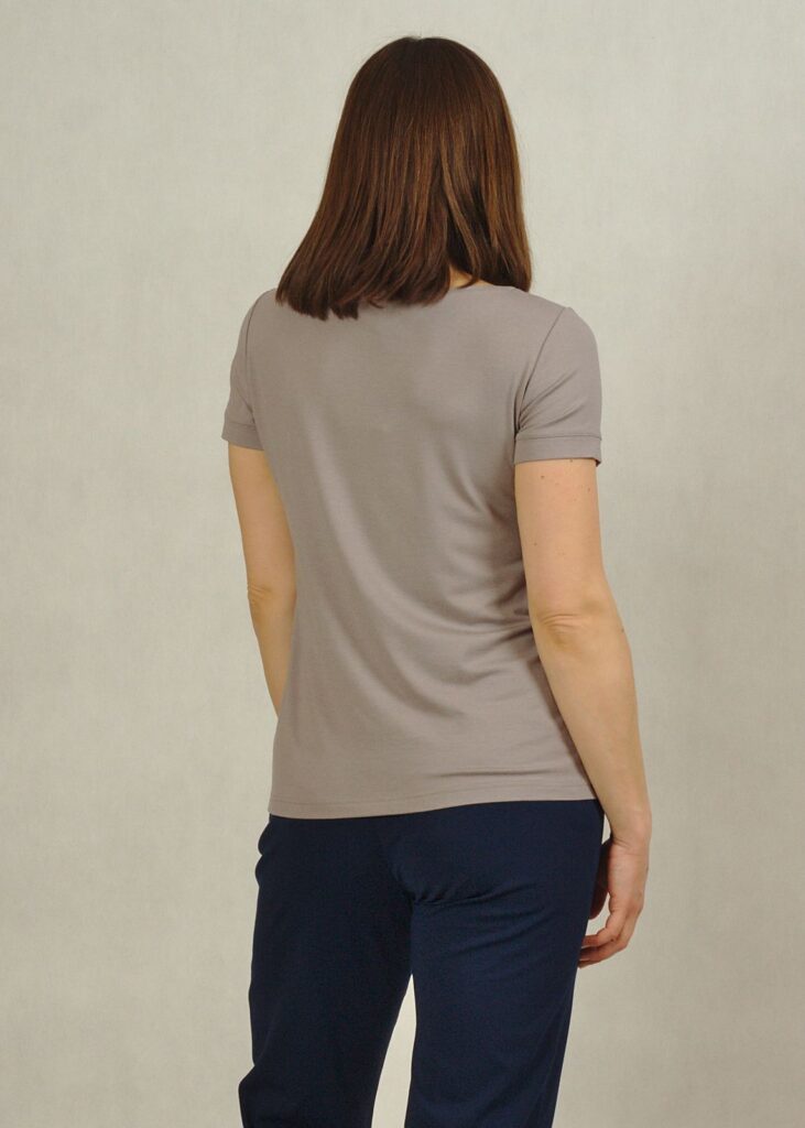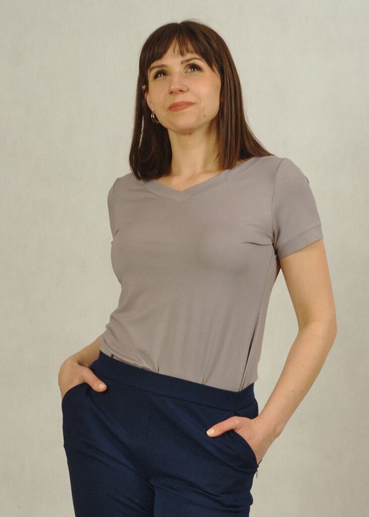 Szara* bluzka bazowa, uszyta jest z dzianiny wiskozowej i sprawdzi się w wielu sytuacjach.