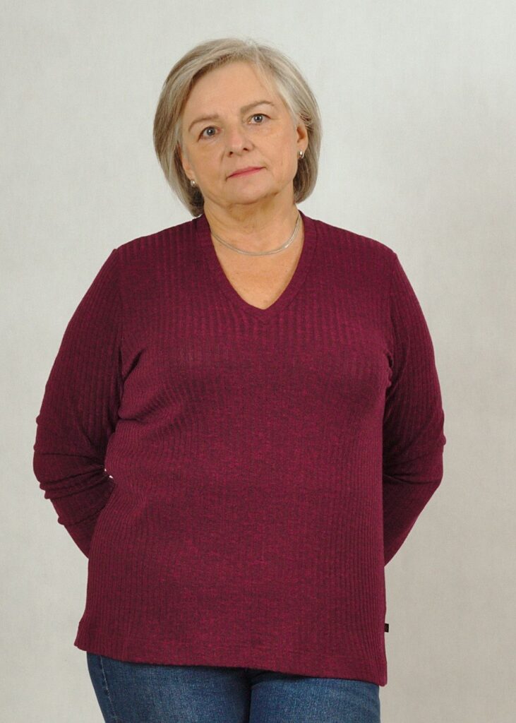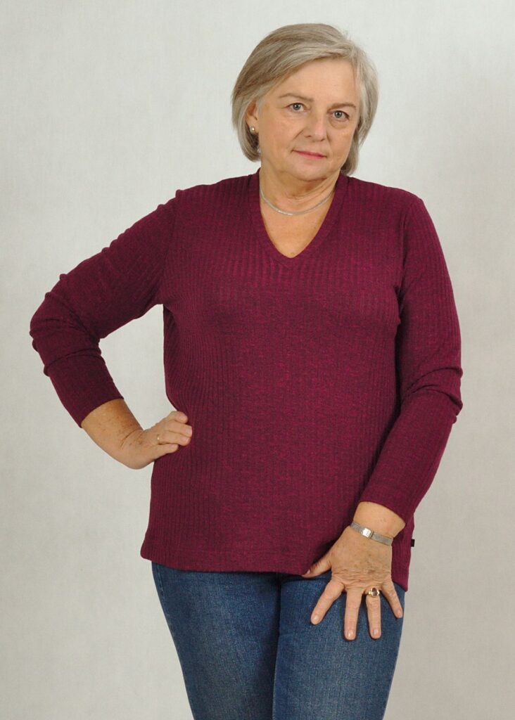 Bazowa bluzka w prążki w kolorze śliwkowym*.