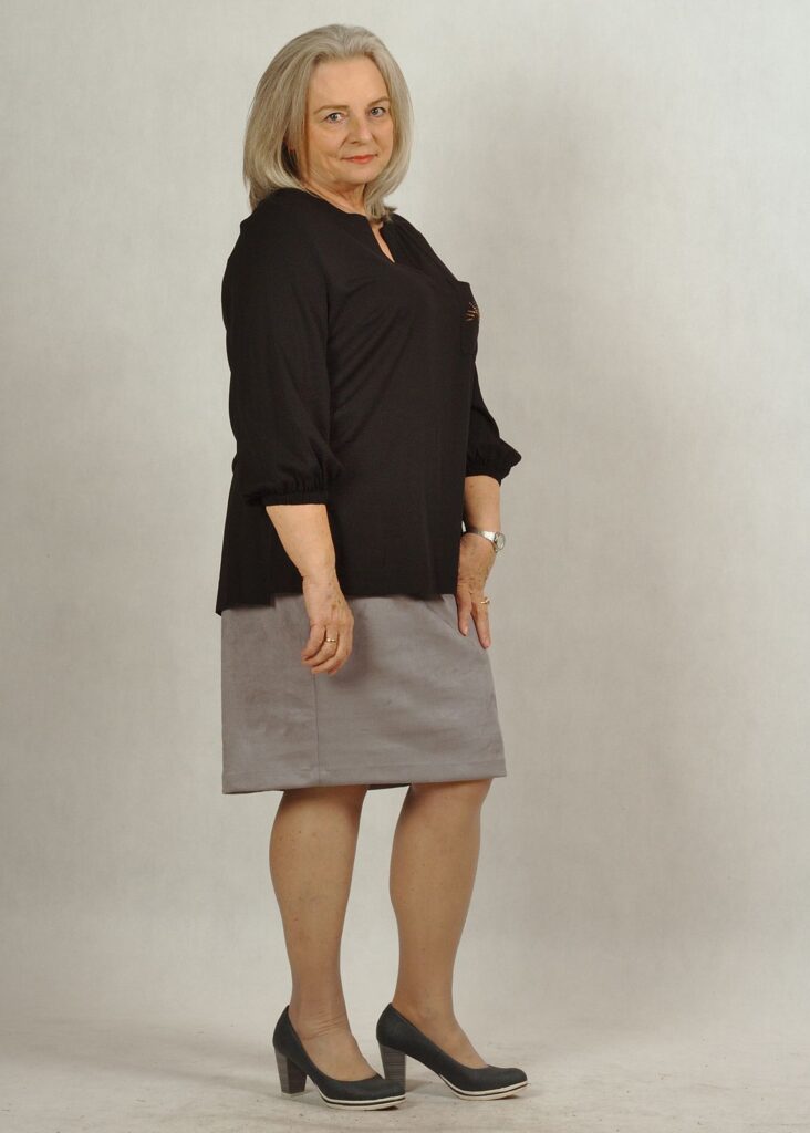 Bluzka jest dopracowana w każdym calu – jej tył jest minimalnie dłuższy, co podnosi walory tej bluzki niewątpliwie.