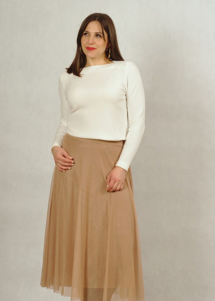 Posiada wygodny długi rękaw, piękny ozdobny dekolt – w łódkę , może stanowić bluzkę bazową – pod spód, ale może też pięknie zdobić Twoją stylizację.