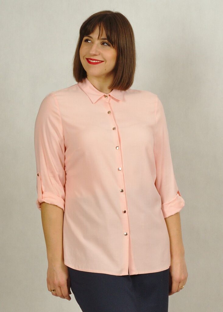 Różowa klasyczna koszula rozpinana – elegancka i uniwersalna bluzka z kołnierzykiem dla plus size