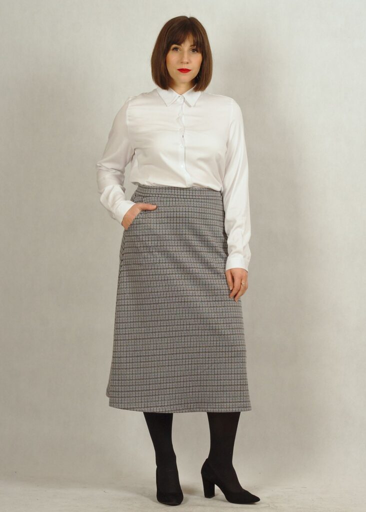 Modelka ma 164 cm wzrostu i nosi rozmiar 2XL.