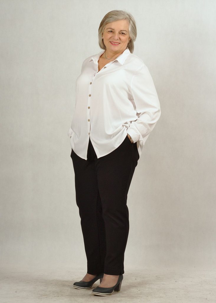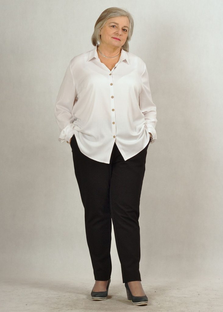 Bluzka koszulowa biała z długim rękawem plus size /664/