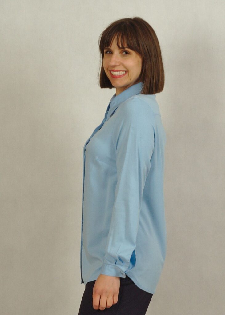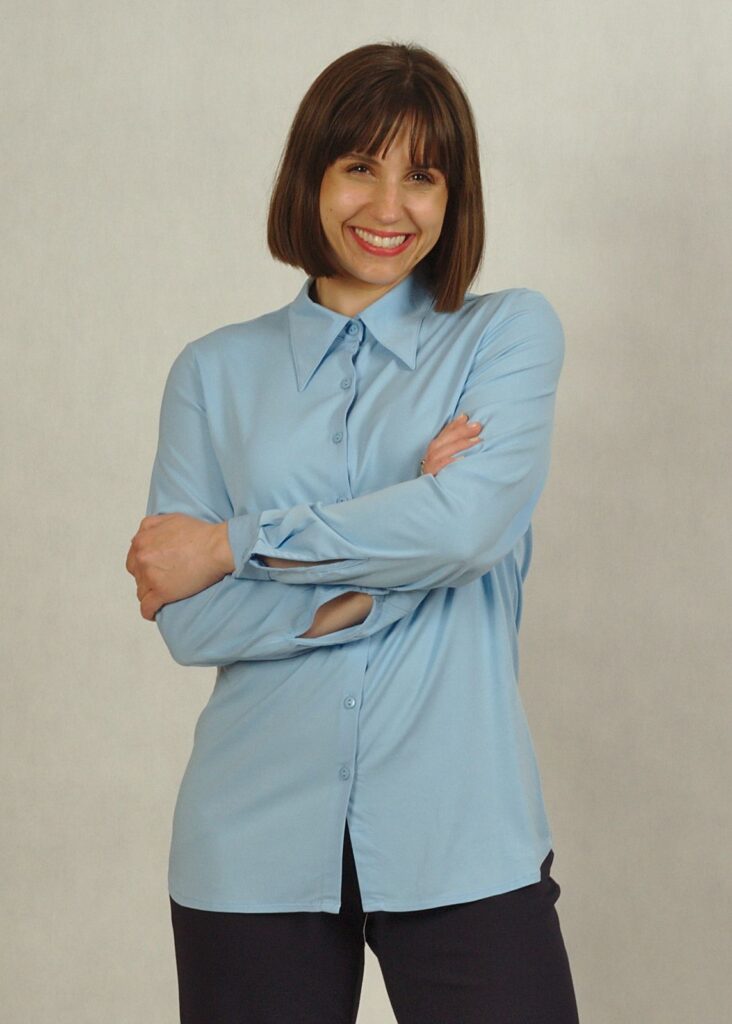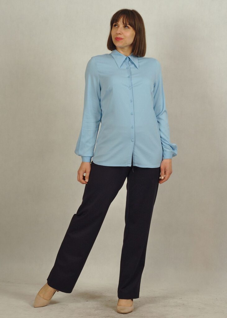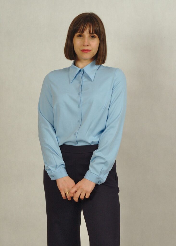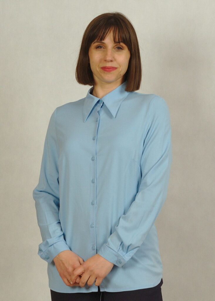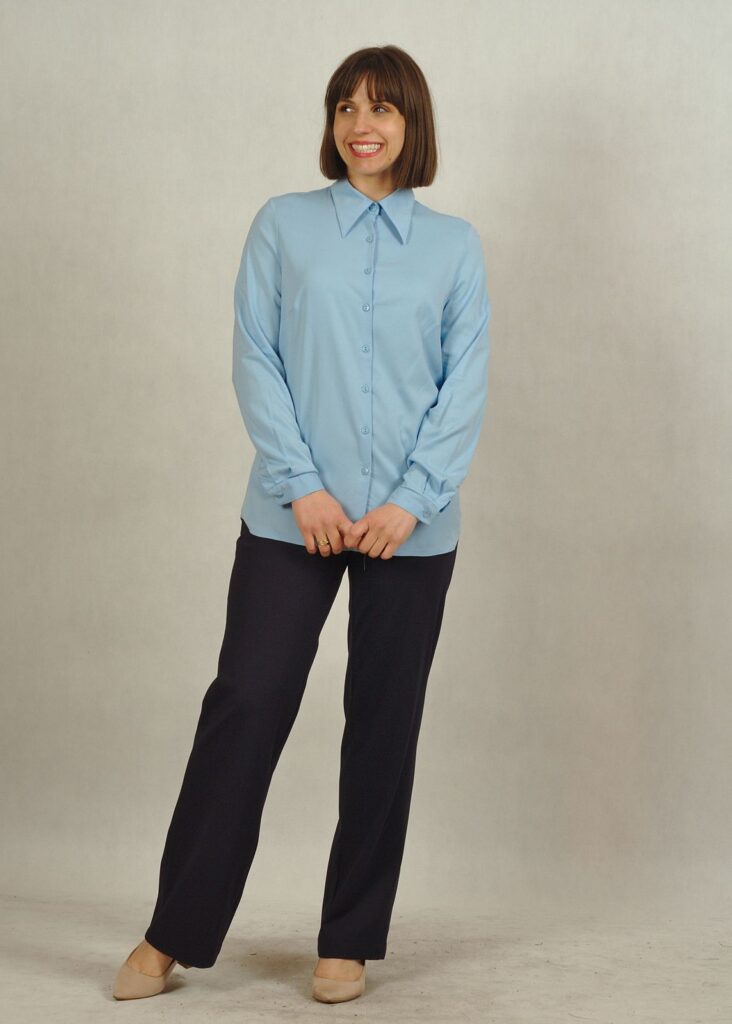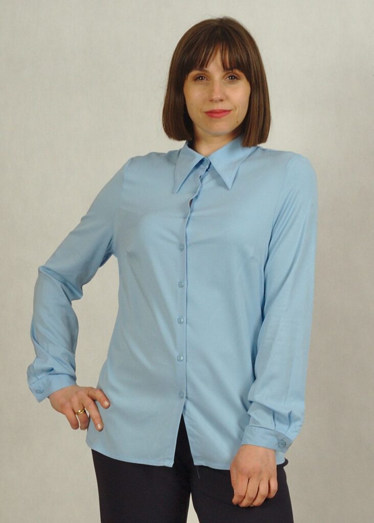 Klasyczna, ponadczasowa, elegancka bluzka koszulowa w kolorze błękitnym*.