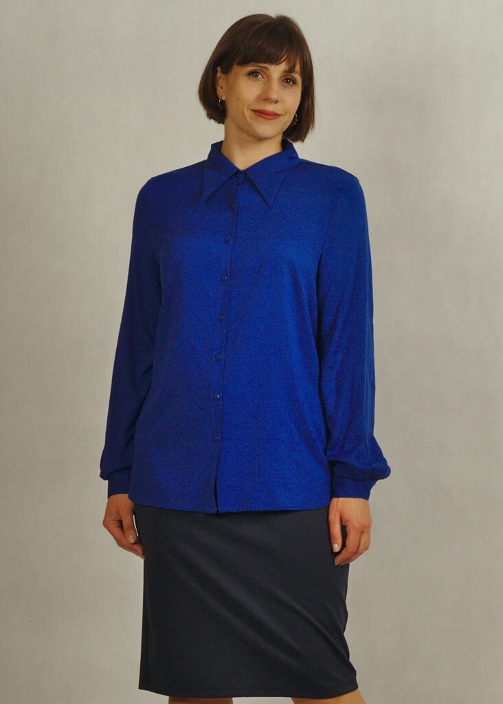 Klasyczna, ponadczasowa, elegancka bluzka koszulowa w różnych wersjach kolorystycznych.