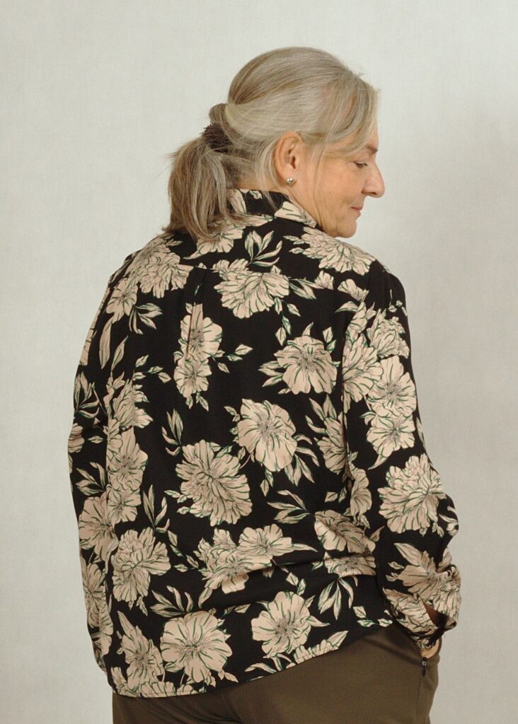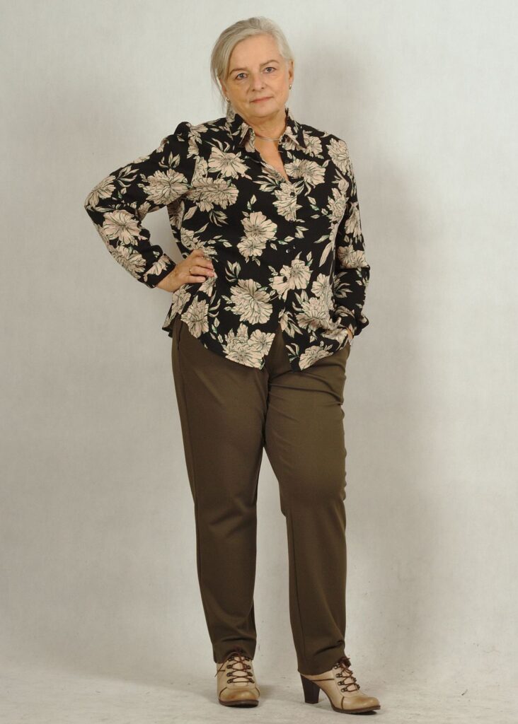 Bluzka koszulowa czarna w kwiaty z długim rękawem /726/