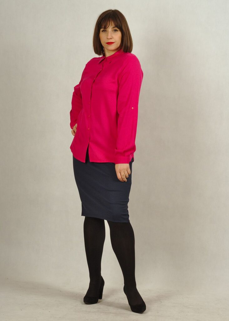 Bluzka koszulowa różowa z długim rękawem plus size /664/