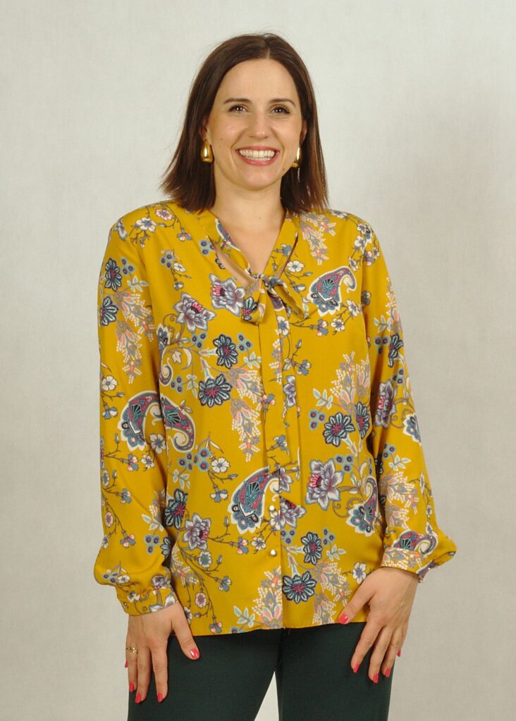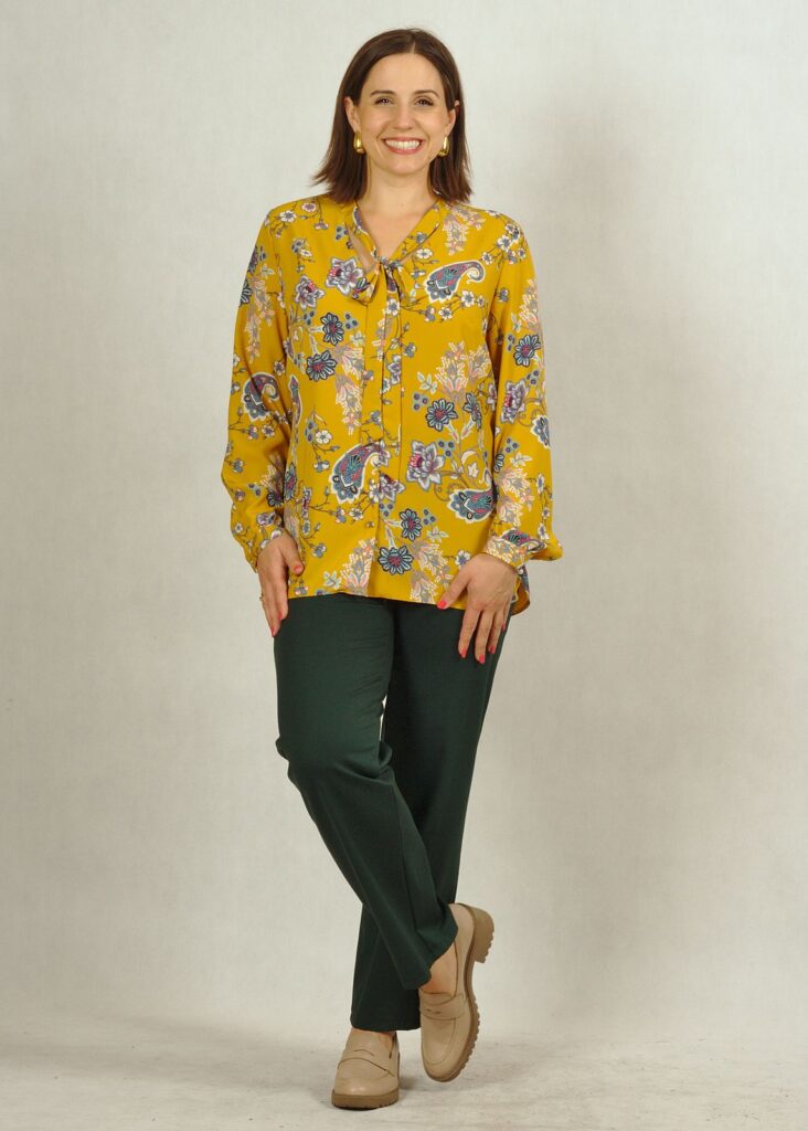 Elegancka musztardowa bluzka w paisley plus size /462/