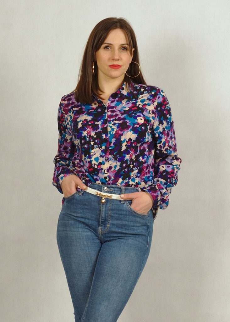 Elegancka bluzka koszulowa w pięknych i modnych kolorach fioletu*.