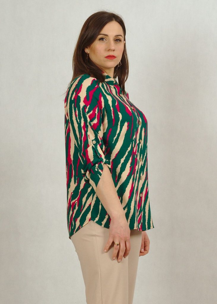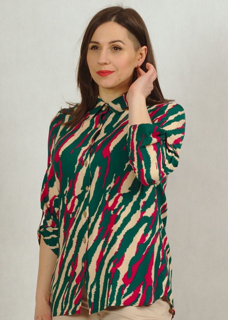 Bluzka koszulowa z kołnierzykiem w zygzaki odcieniach zieleni /643/