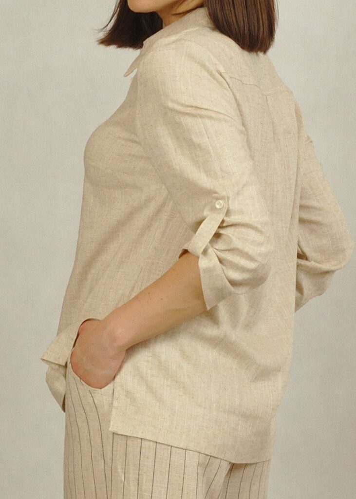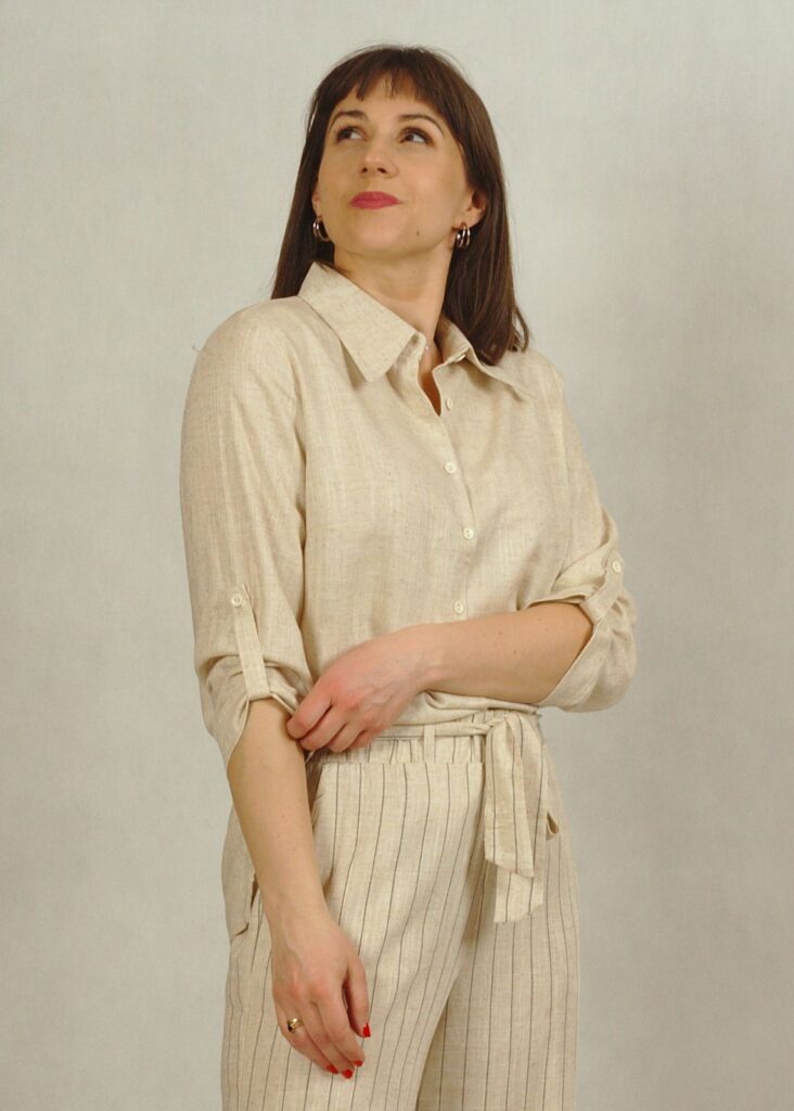 Beżowa bluzka koszulowa to must-have w każdej szafie.