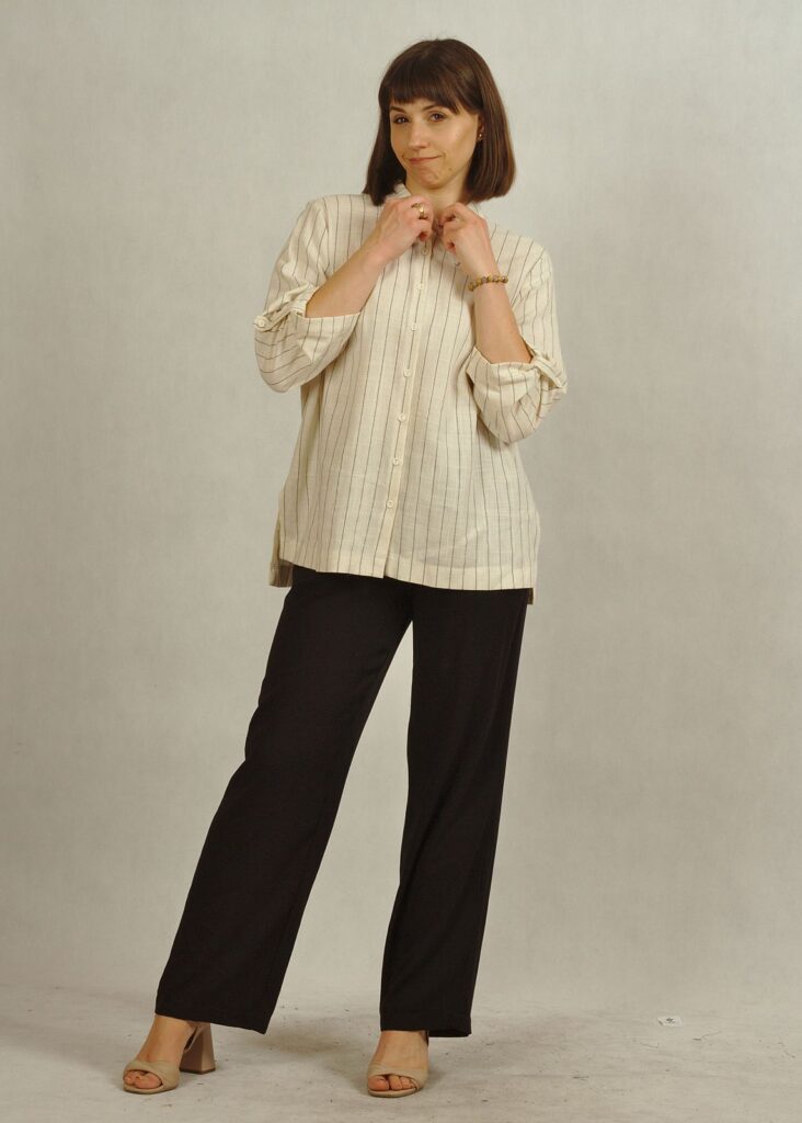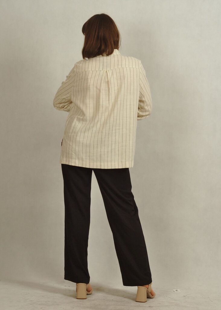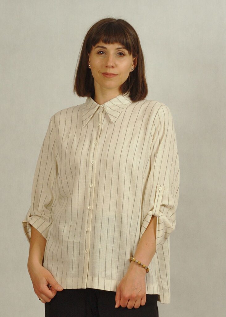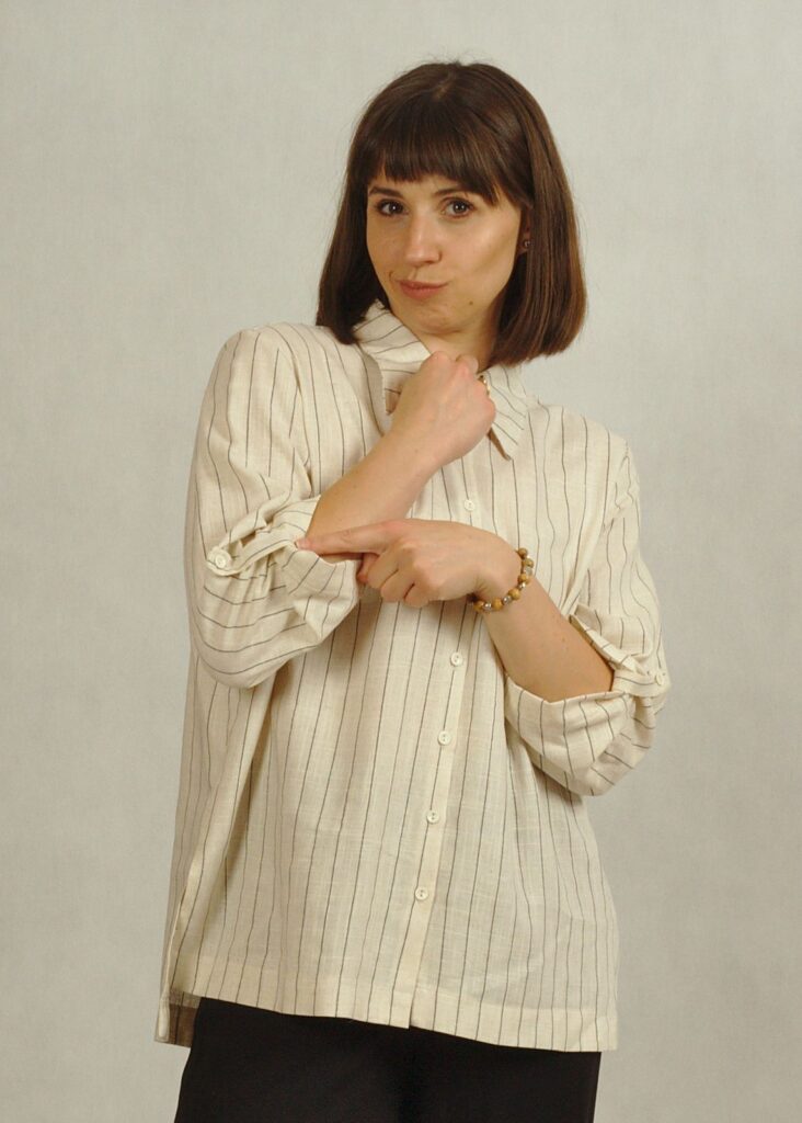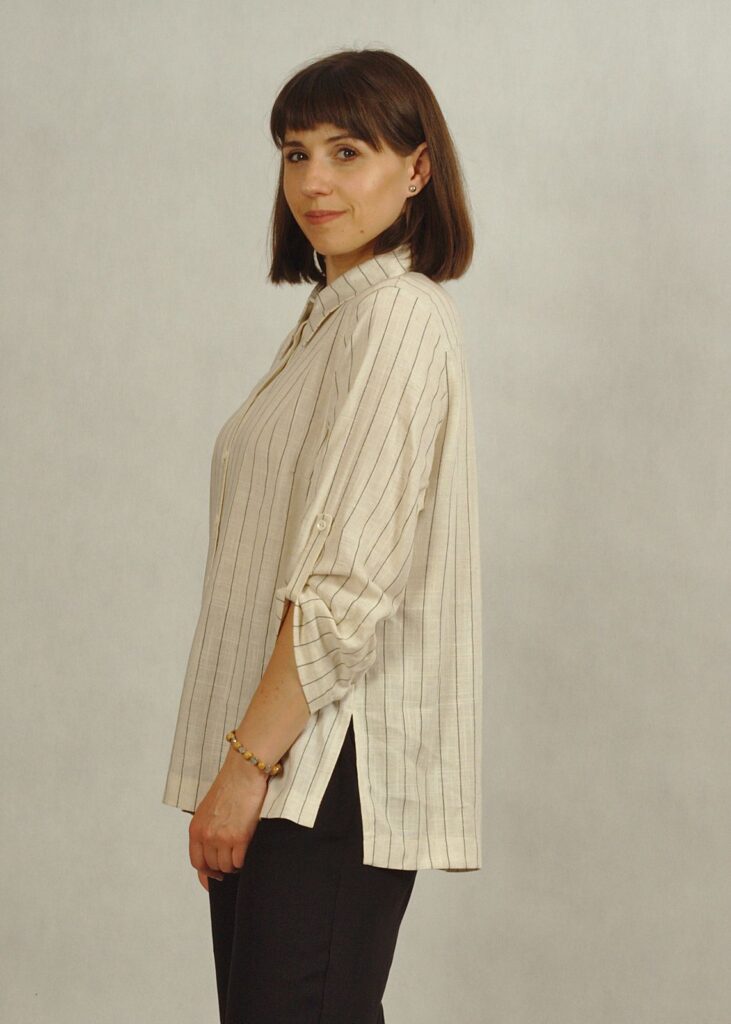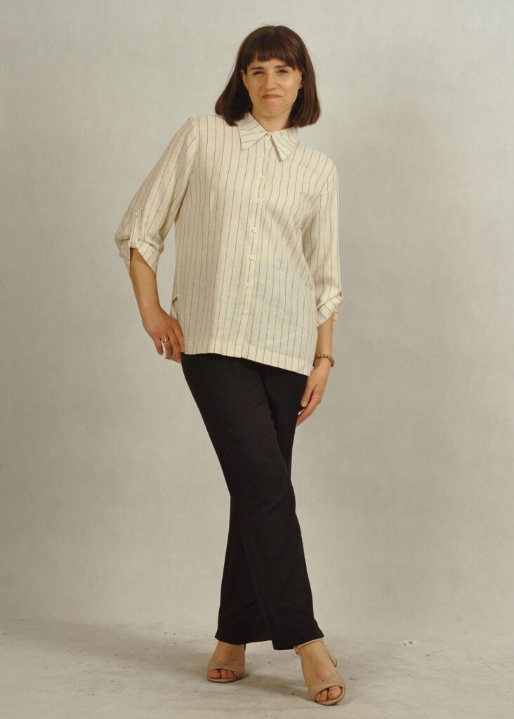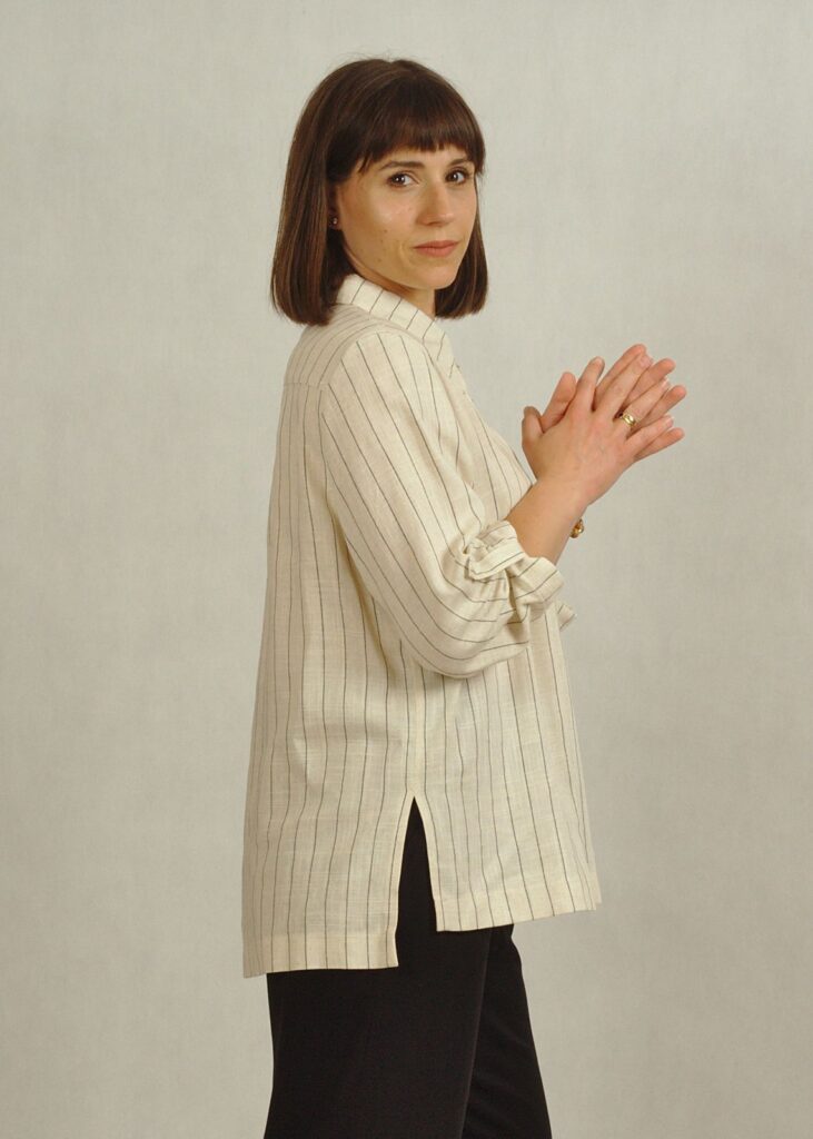 Ten model łączy cechy klasycznej koszuli z lnu i kobiecego stylu, tworząc ponadczasową bazę wielu stylizacji.
