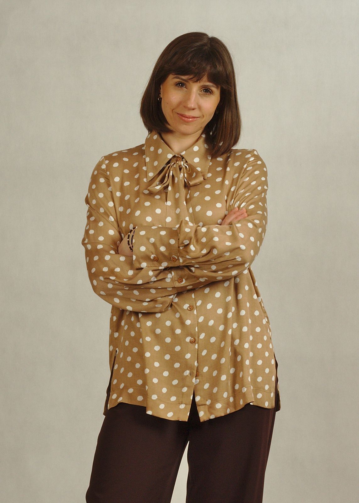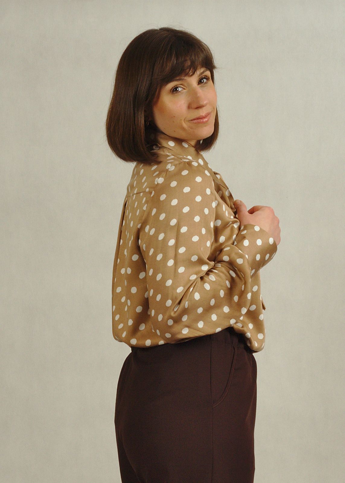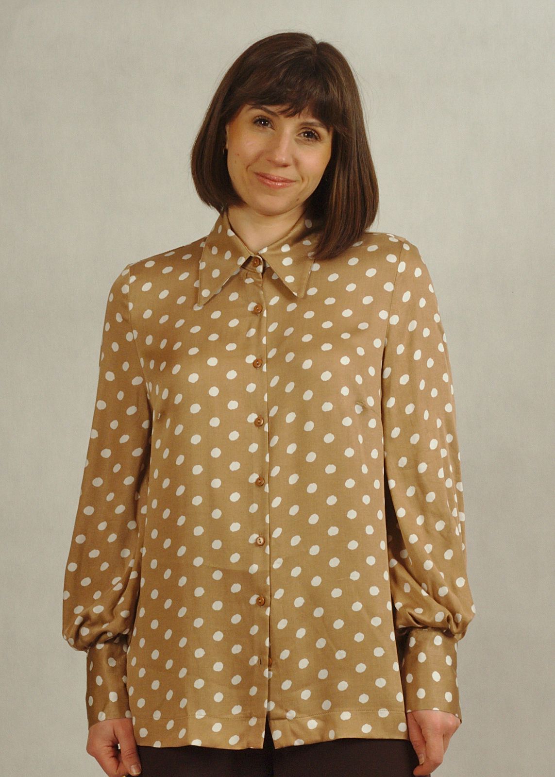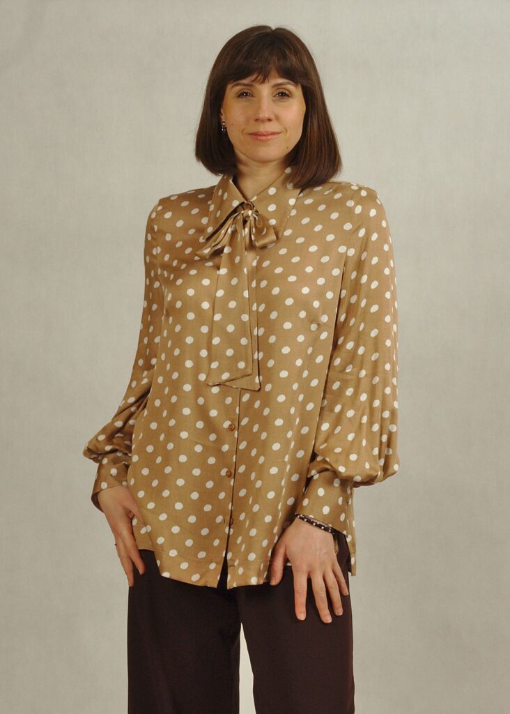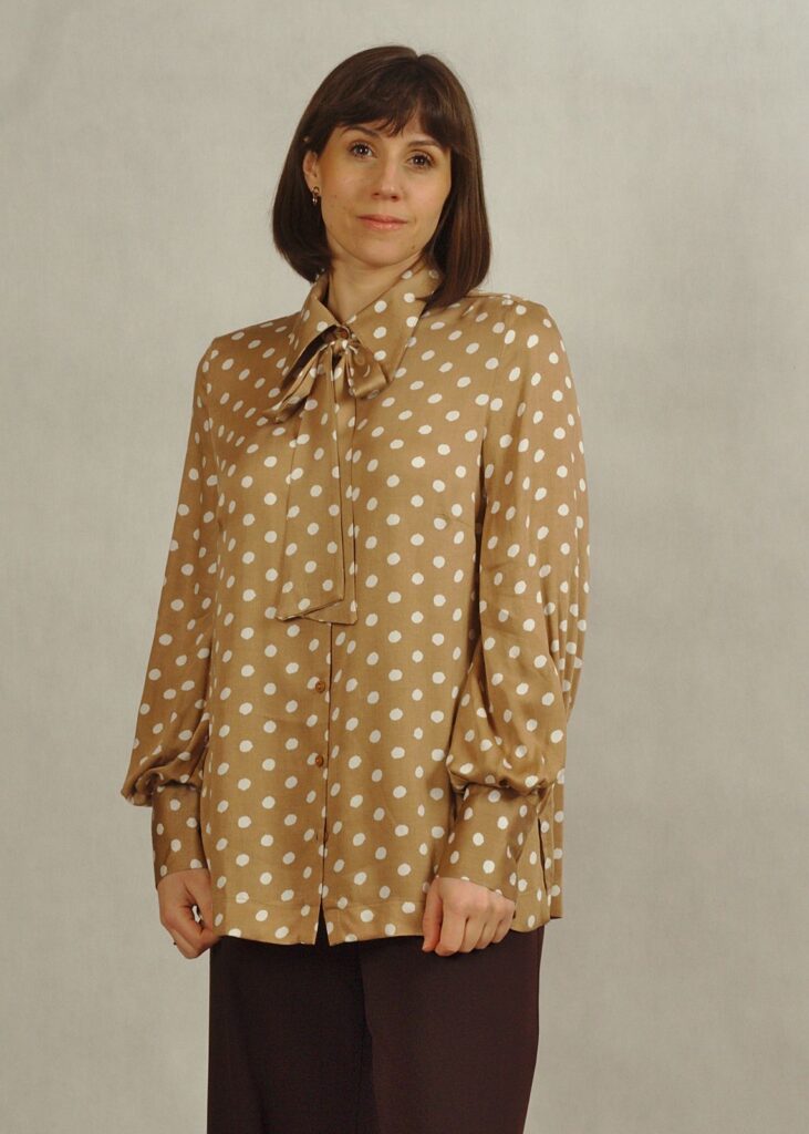 Bluzka beżowa w białe grochy to propozycja, która w tym sezonie jest mocno w trendach, ale jednocześnie jest bardzo uniwersalna.