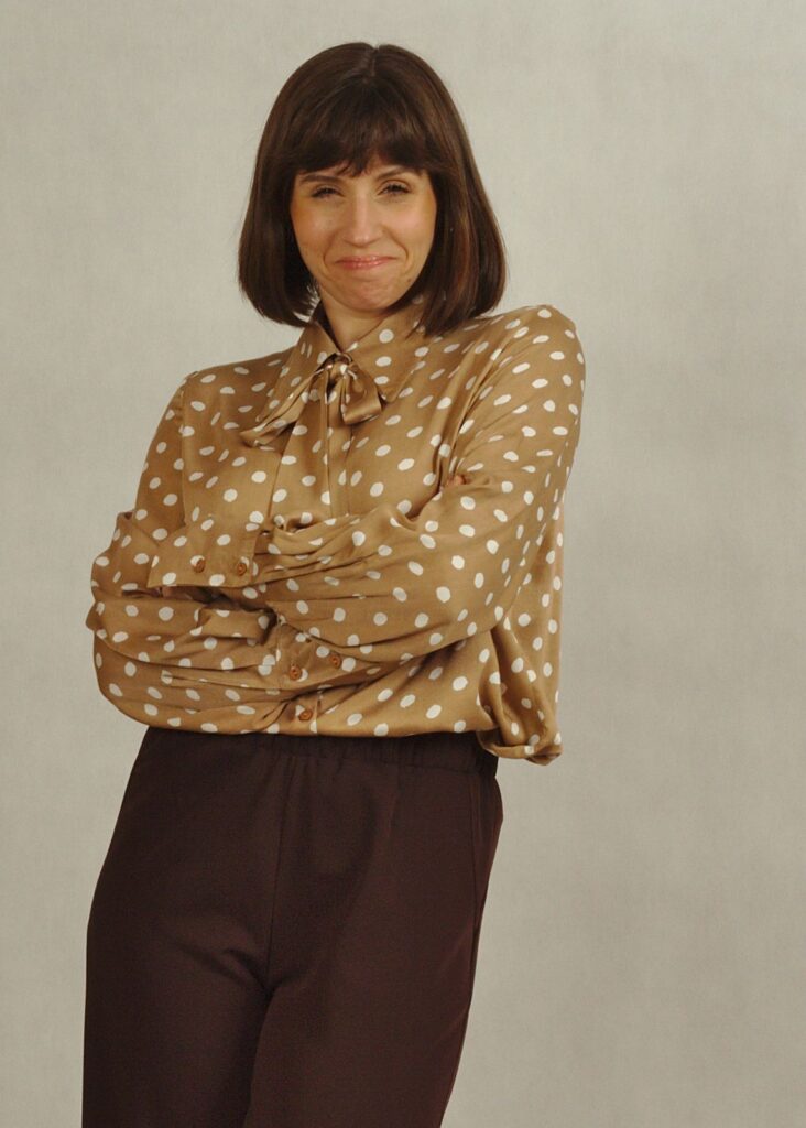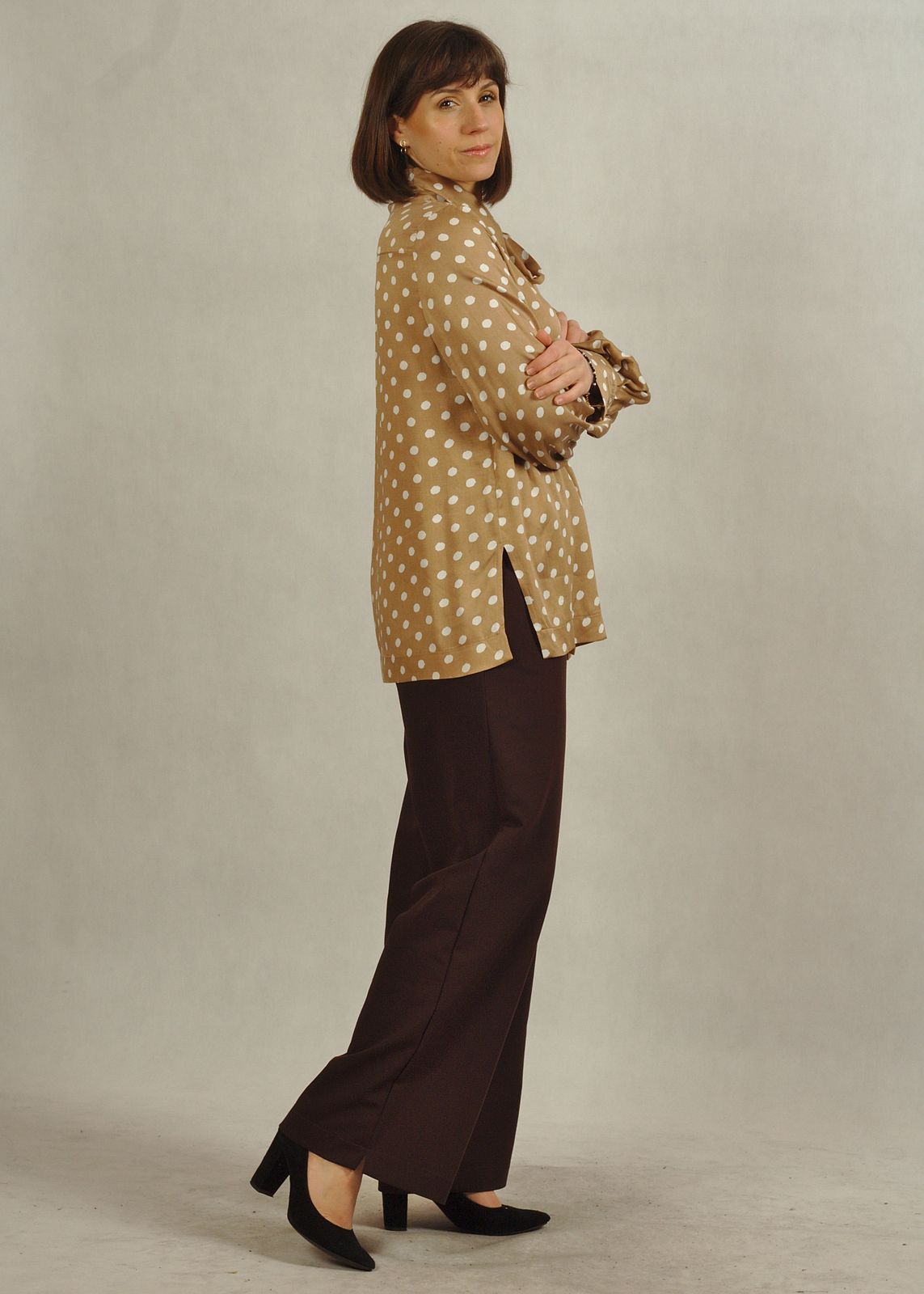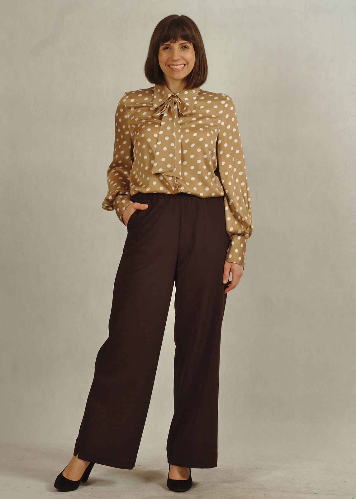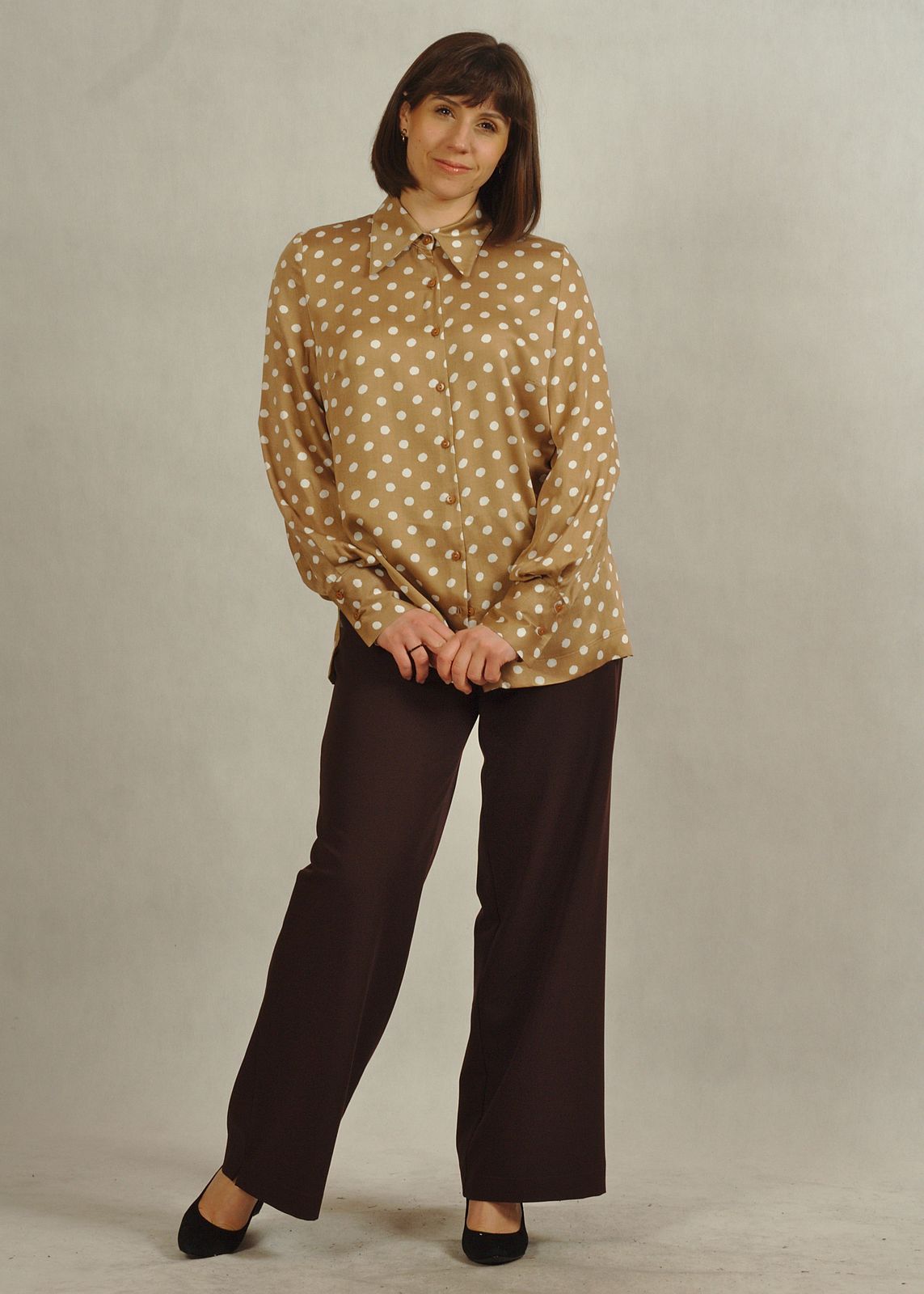 Bluzka beżowa w białe grochy to propozycja, która w tym sezonie jest mocno w trendach, ale jednocześnie jest bardzo uniwersalna.