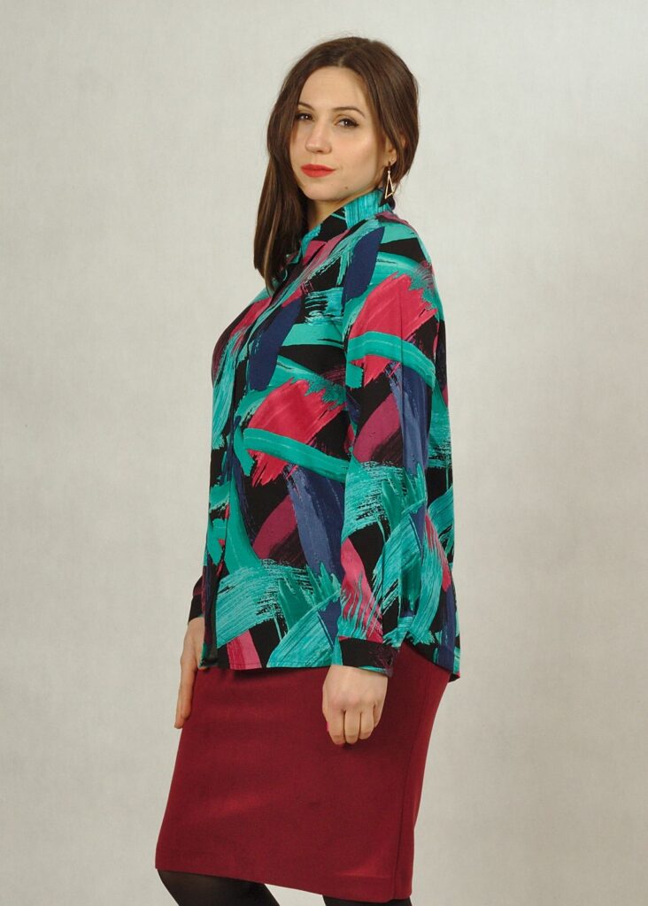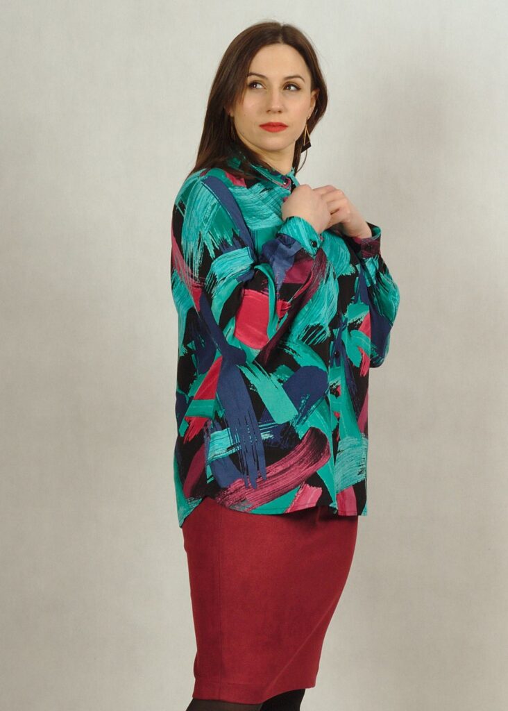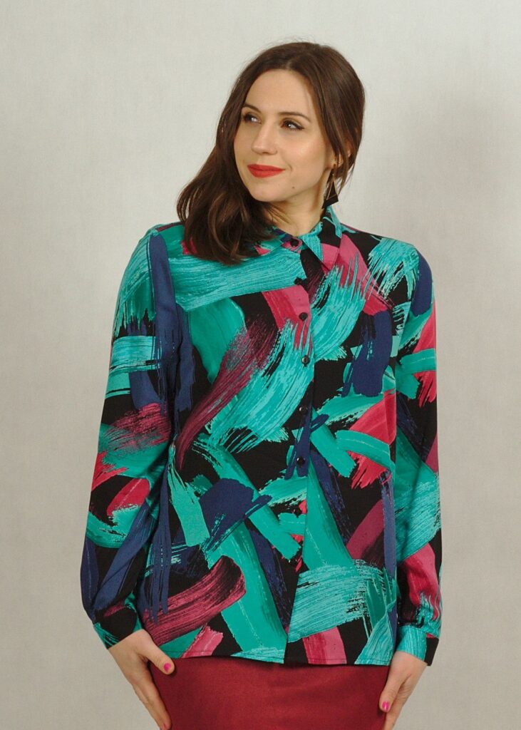 Poczuj się pięknie w różnych odcieniach zieleni, bluzka wygląda jak pomalowana pędzlem.