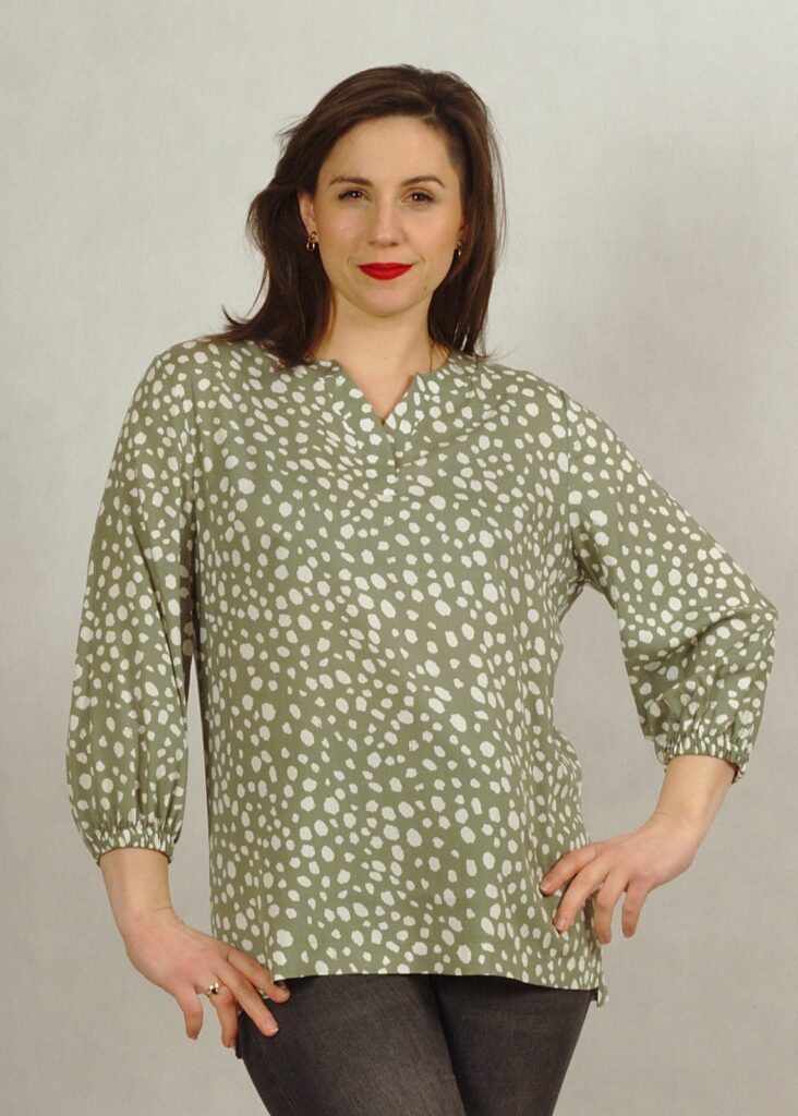 Bluzka z wiskozy 100% najwyższej jakości w kolorze miętowym z drobnymi białymi wzorami* to świetna propozycja dla Ciebie!