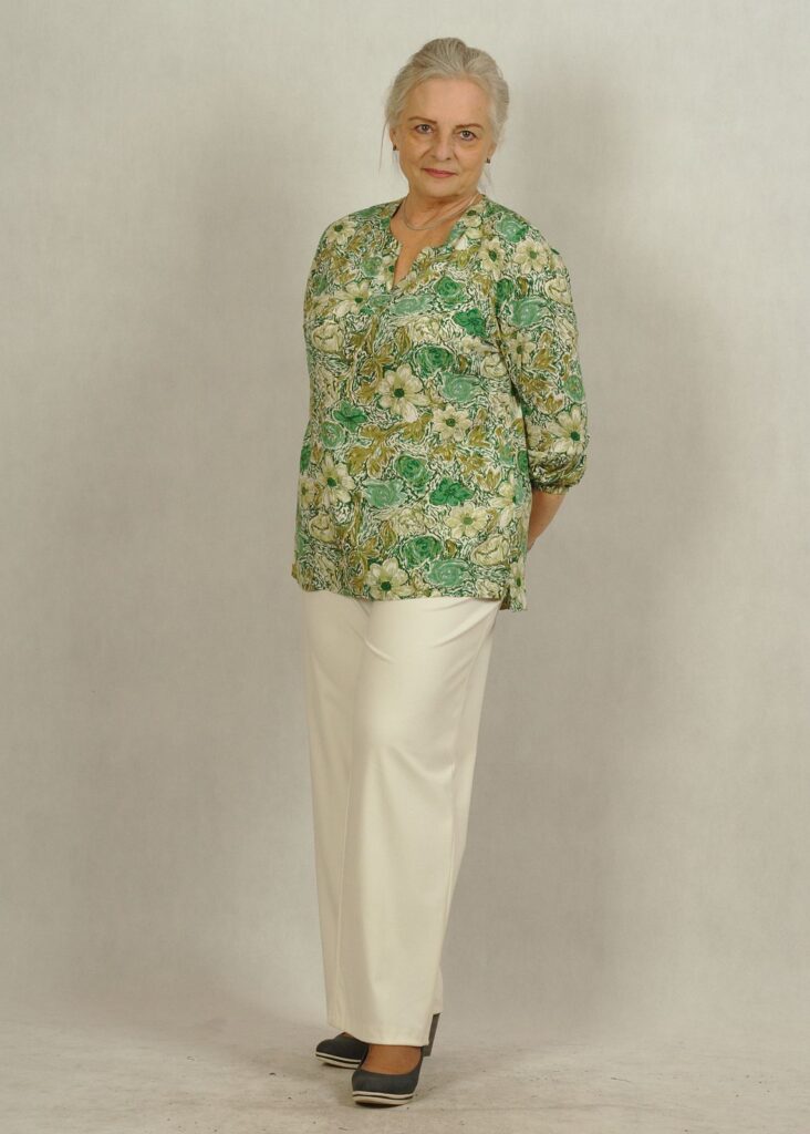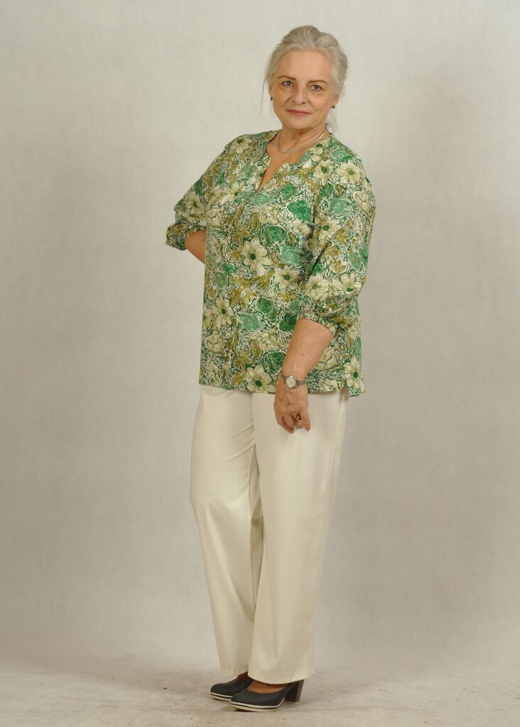 Bluzka z wiskozy 100% najwyższej jakości w kolorze zielonym w piękne, malowane kwiaty* to świetna propozycja dla Ciebie!