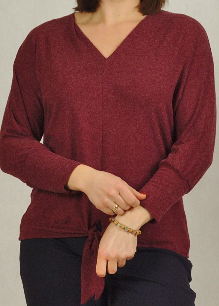 Bordowa* bluzka, to śliczna propozycja z wiązaniem w talii – świetny sposób na udaną stylizację.