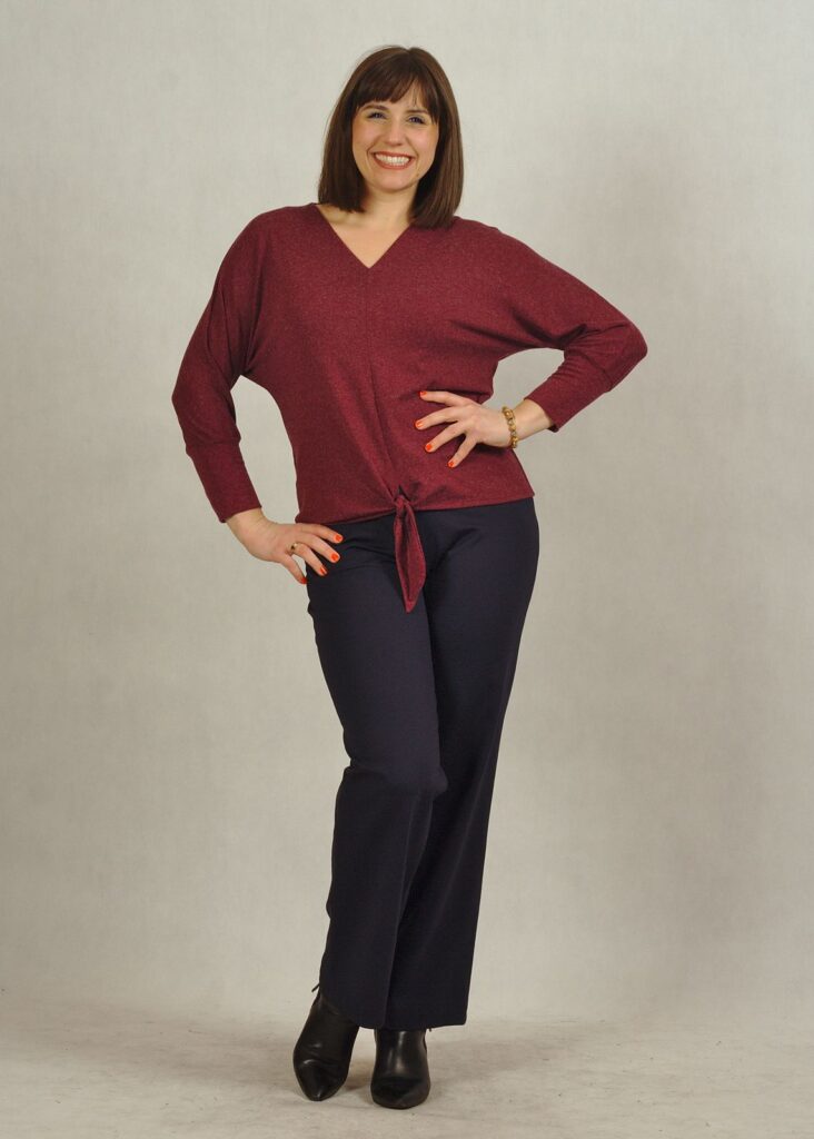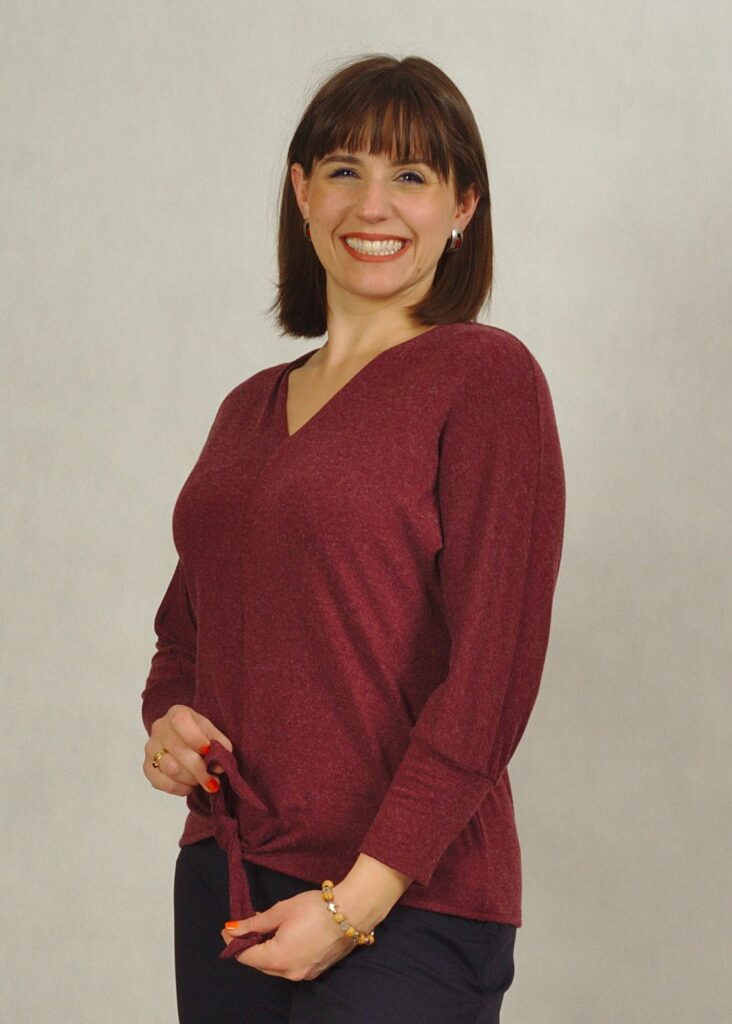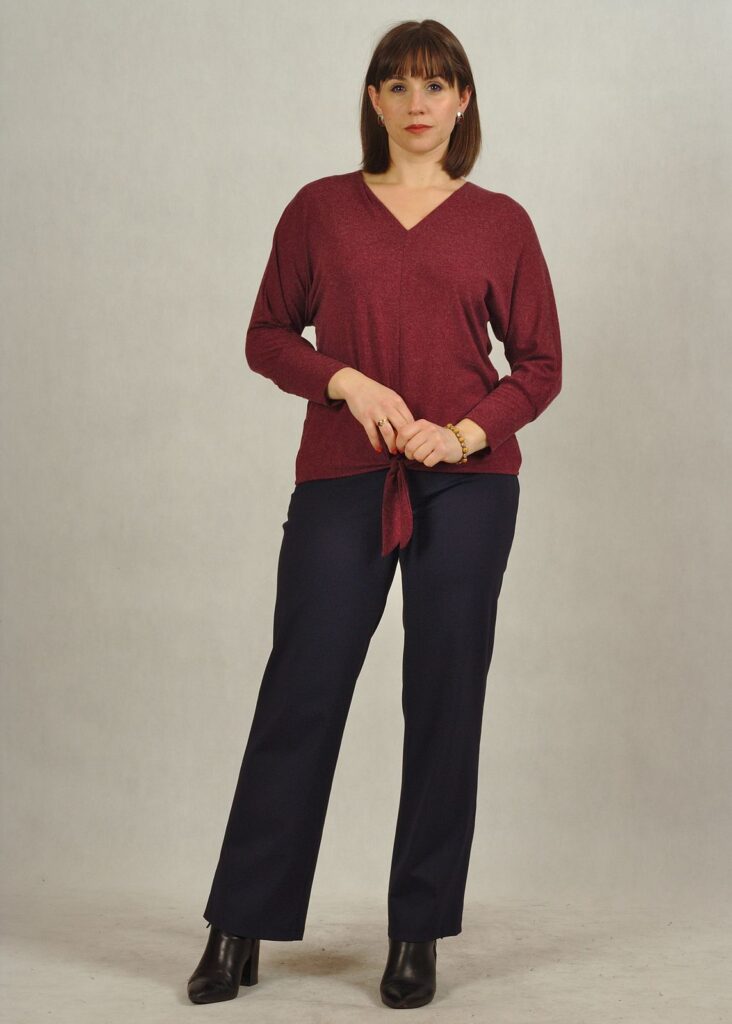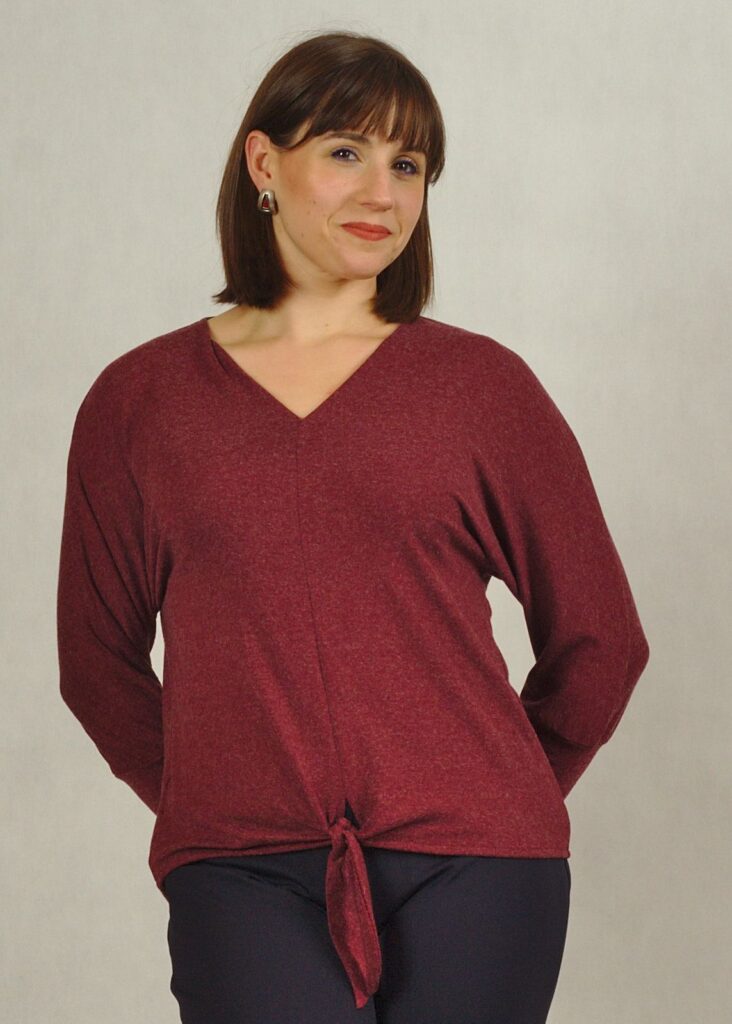 Bluzka z wiązaniem – komfortowa, przyjemna dzianina świetne układa się na sylwetce.