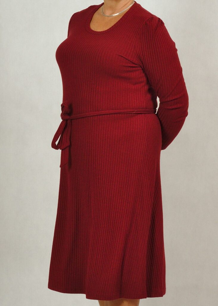 Sukienka ma świetny krój, lekko rozszerzany. Można w talii przewiązać ją dołączonym paskiem.