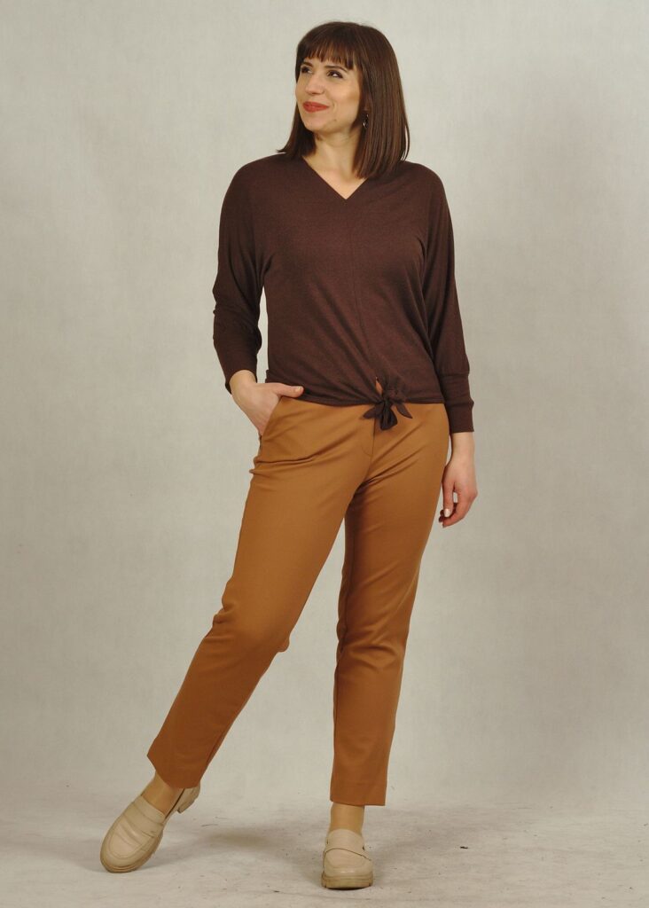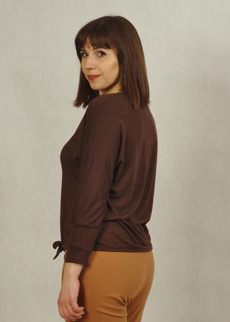 Brązowa bluzka to śliczna propozycja z wiązaniem w talii – świetny sposób na udaną stylizację.