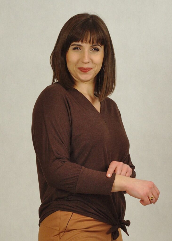 Bluzka z wiązaniem – komfortowa,przyjemna dzianina świetne układa się na sylwetce.