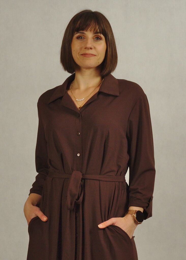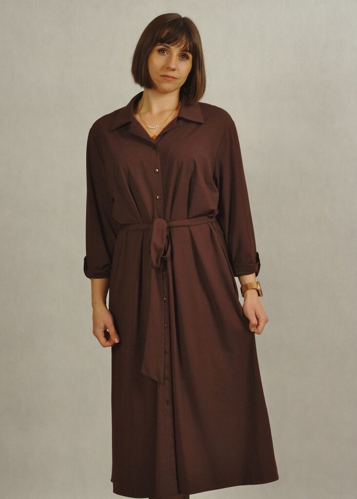 Brązowa elegancka szmizjerka to propozycja stworzona z myślą o kobietach, które łączą nowoczesną estetykę z klasyczną subtelnością.