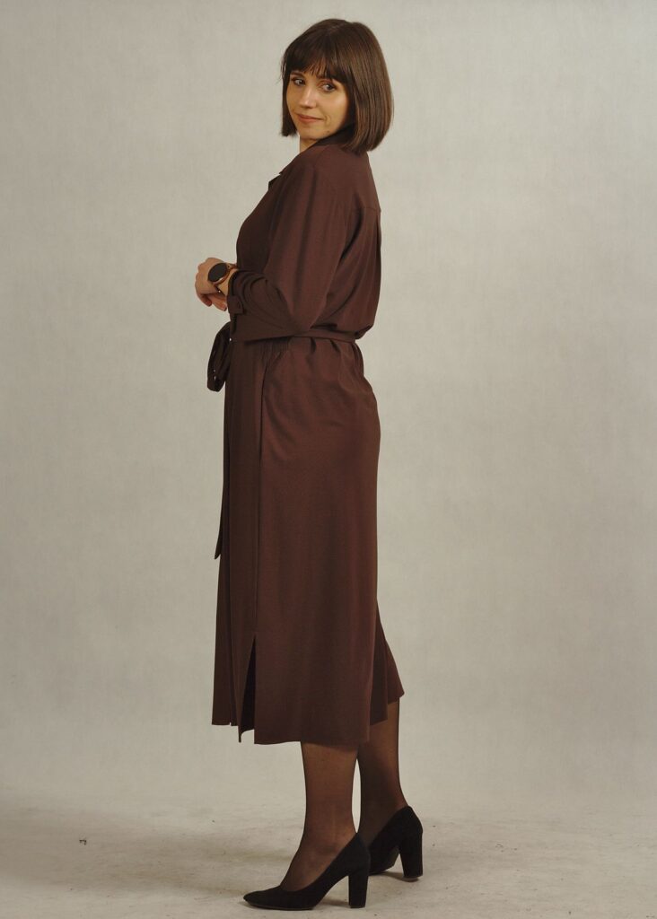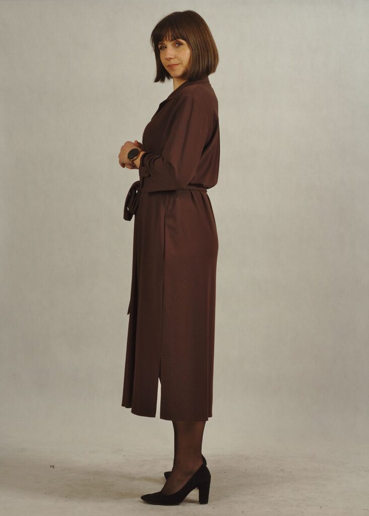 Brązowa sukienka, inspirowana ciepłymi odcieniami ziemi, idealnie wpisuje się w trendy minimalizmu i naturalnej elegancji.