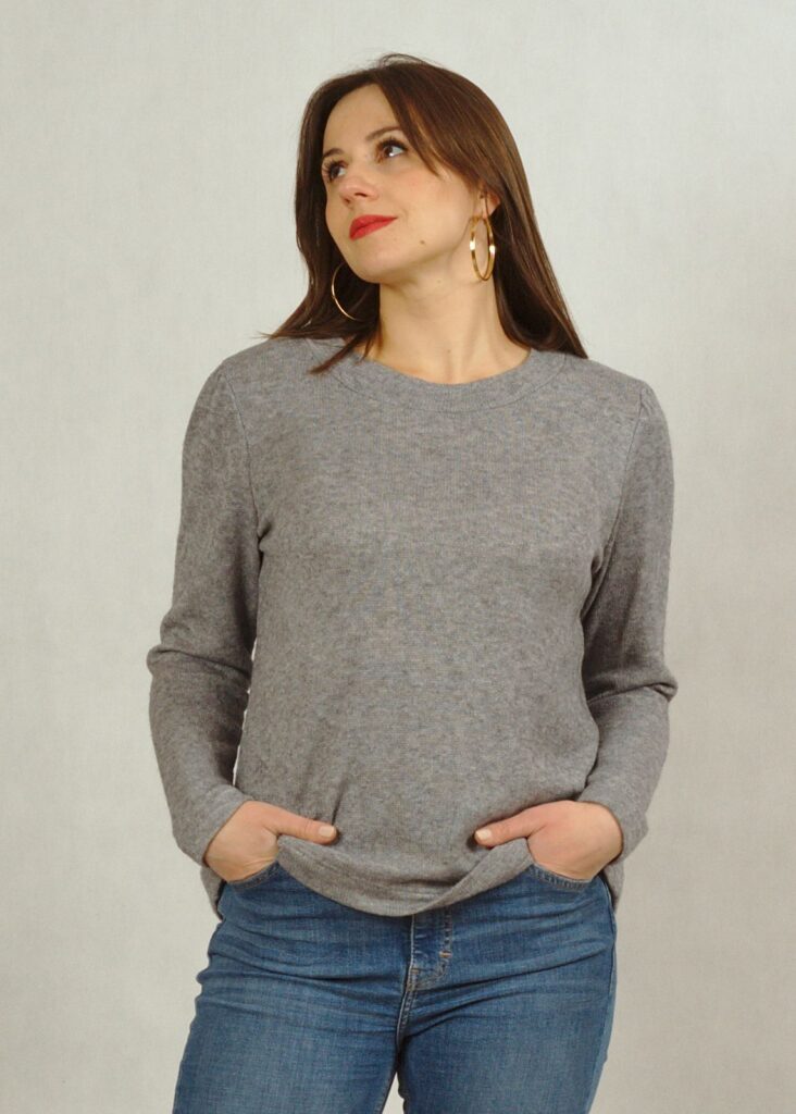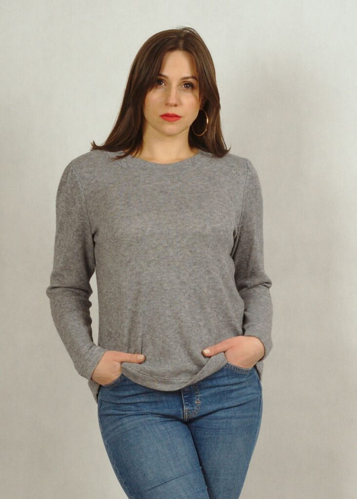 Bluzka jednokolorowa z ciepłej dzianiny z wiskozą.