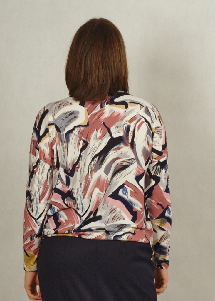 Bluzka we wzory jest uniwersalna, ma piękne, energetyczne kolory.