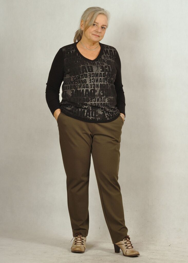 Model o prostym kroju świetnie układa się na sylwetce, zarówno w standardowych rozmiarach, jak i w wersji plus size.
