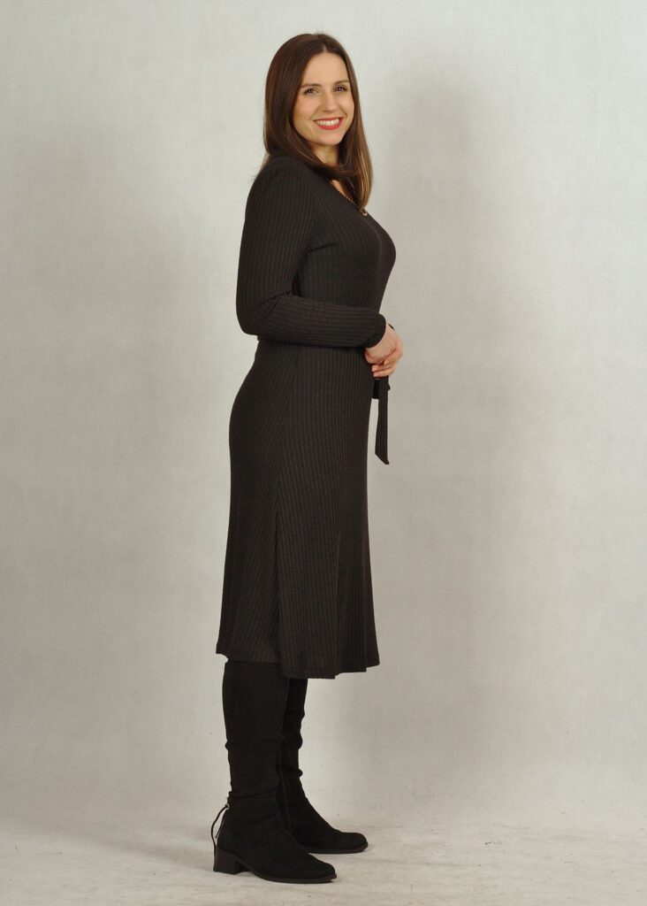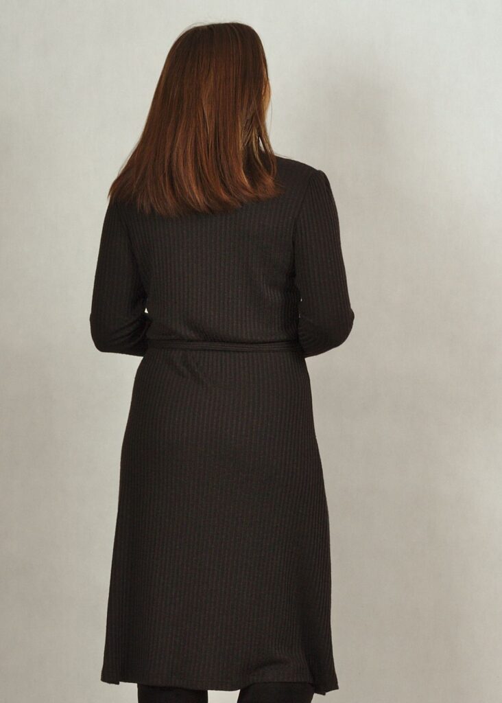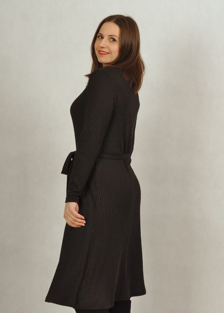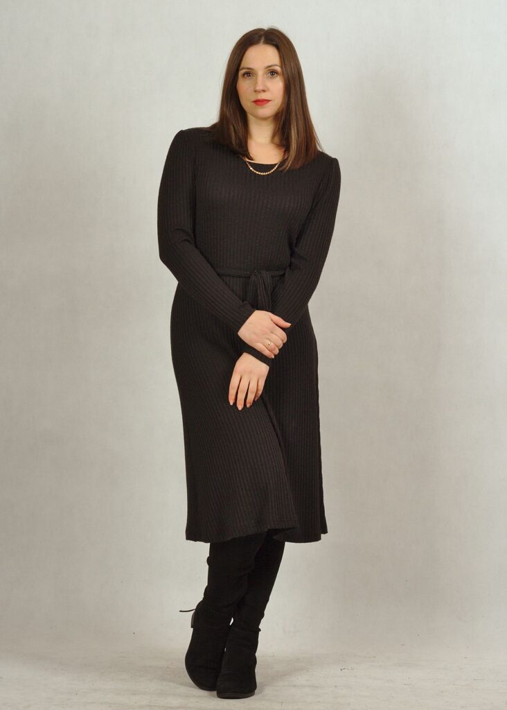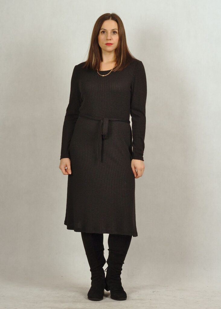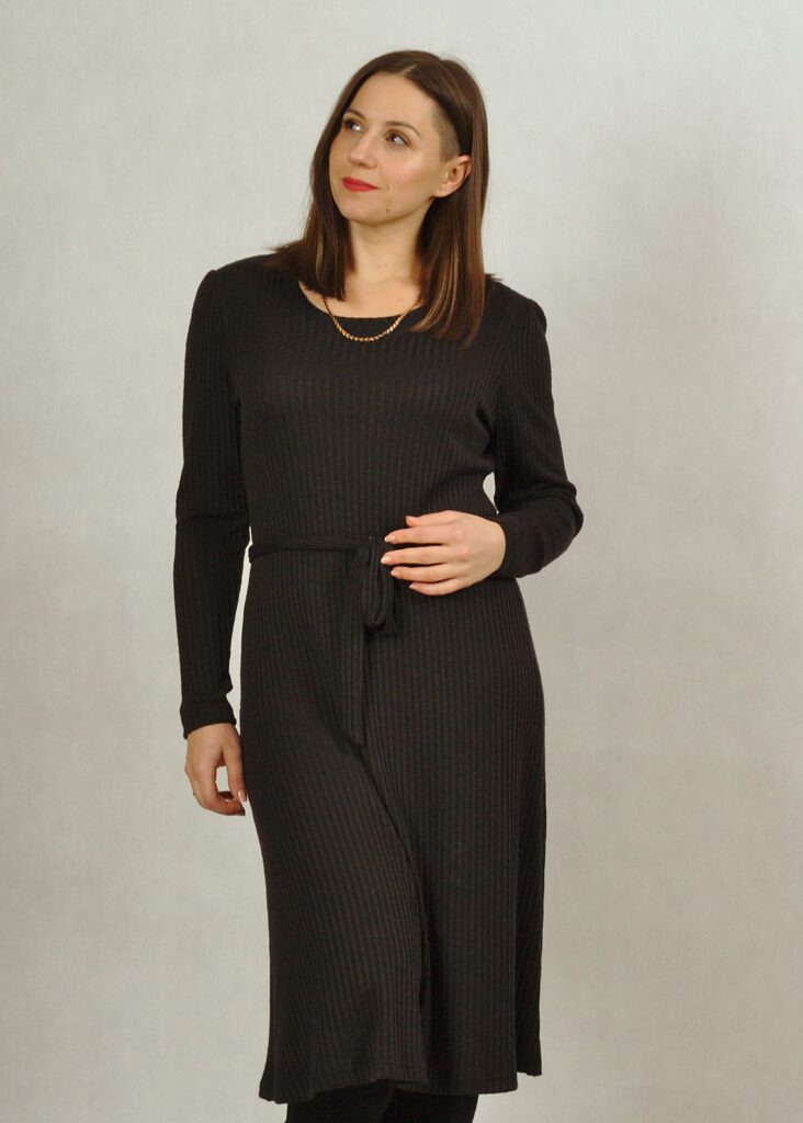 Supermodna sukienka z dzianiny prążkowanej, zawierającej w składzie wiskozę.